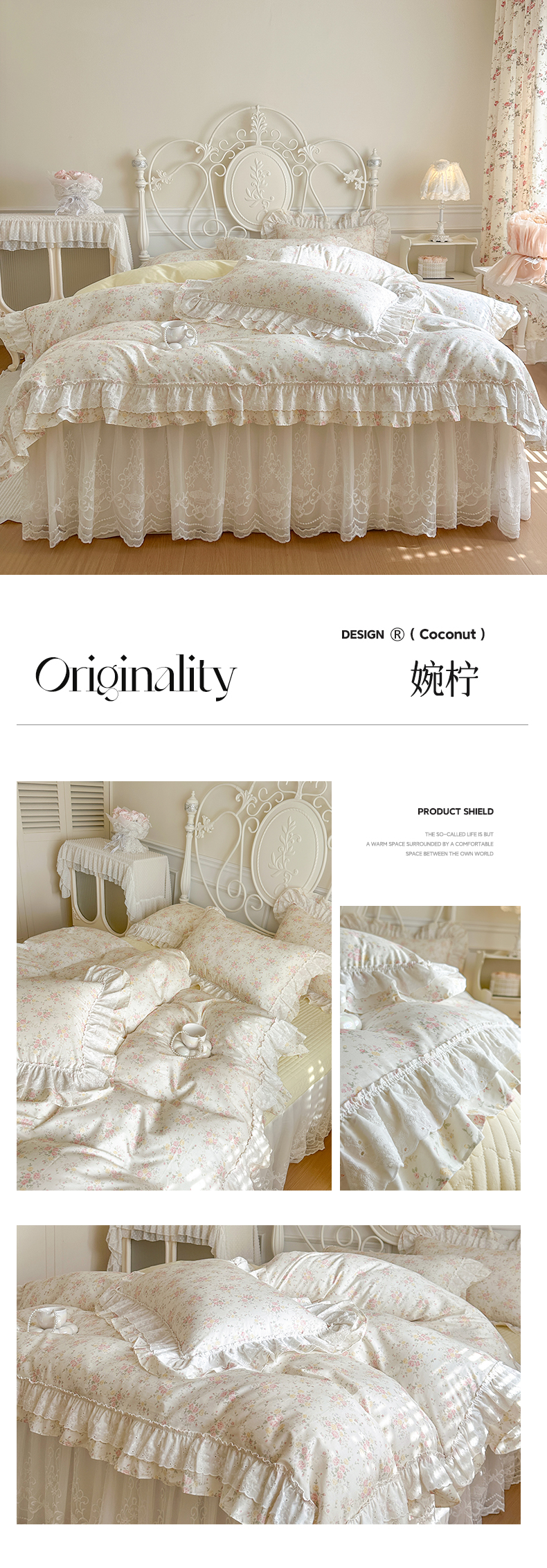 瑞宝 2026春夏新款全棉纯棉碎花AB印花单床裙 床裙单件 婉柠