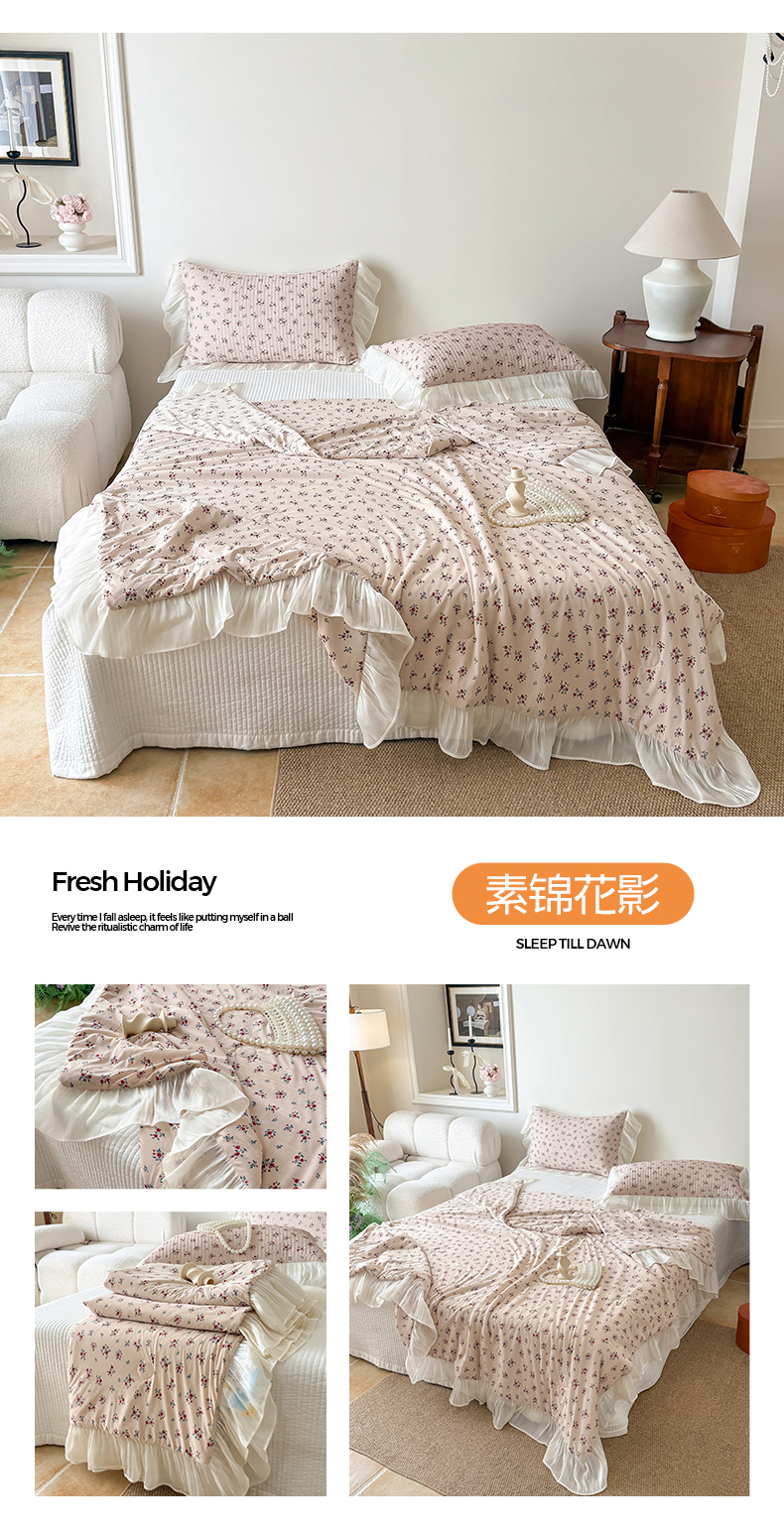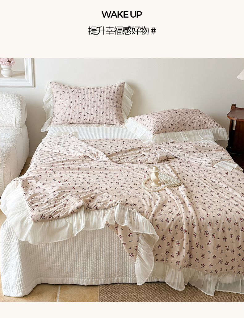 商品名称:吾欢心 2026新款法式花边凉感丝夏凉被空调被夏被可机洗 云间茉莉