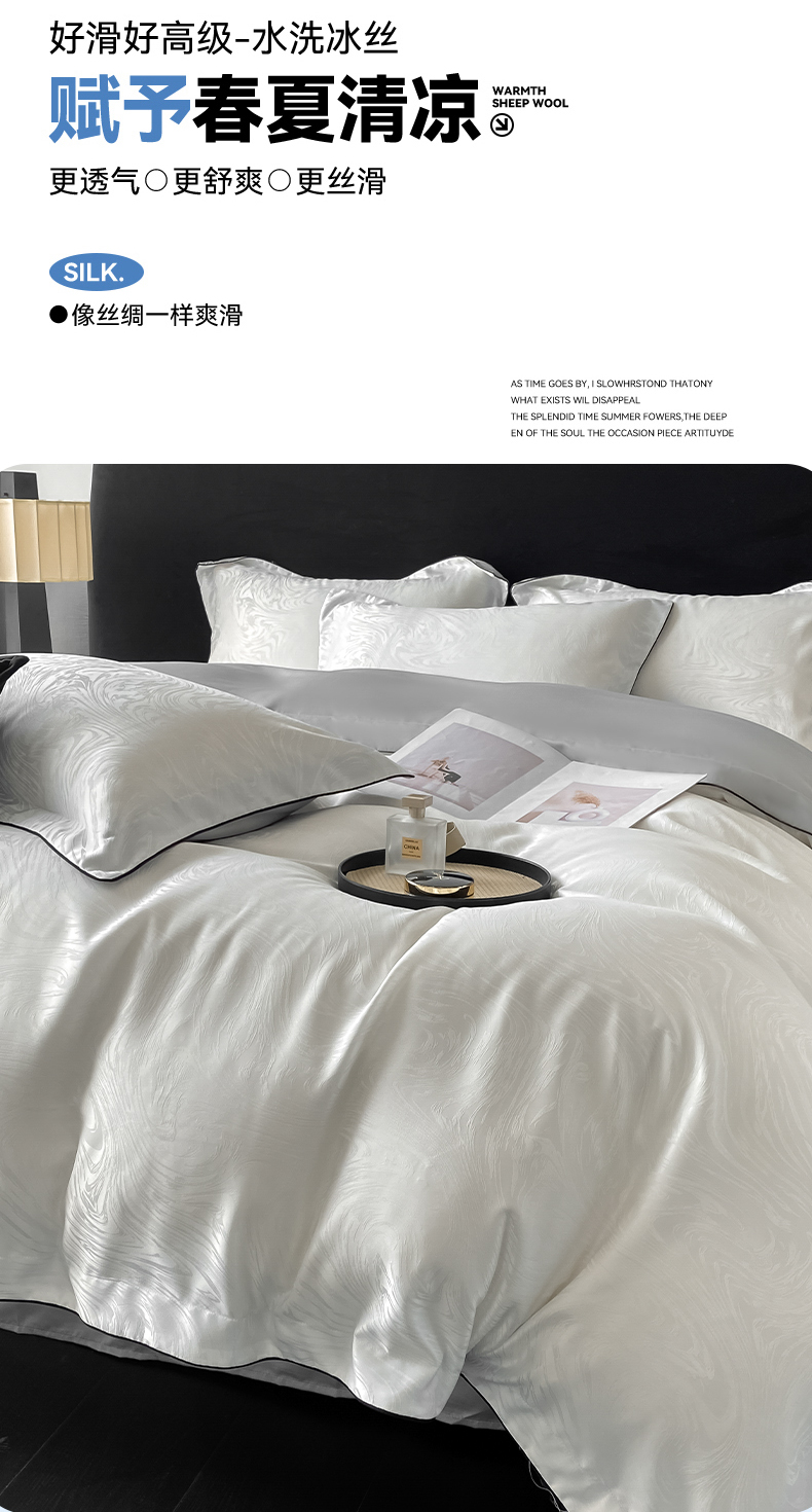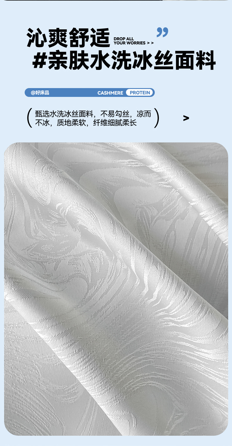 当前位置: 91家纺网 > 商品网购 > 床品套件 > 四件套 > 其它四件套 > 爱彼家纺 2026新款轻奢水洗冰丝提花亲肤四件套 知夏碧海蓝