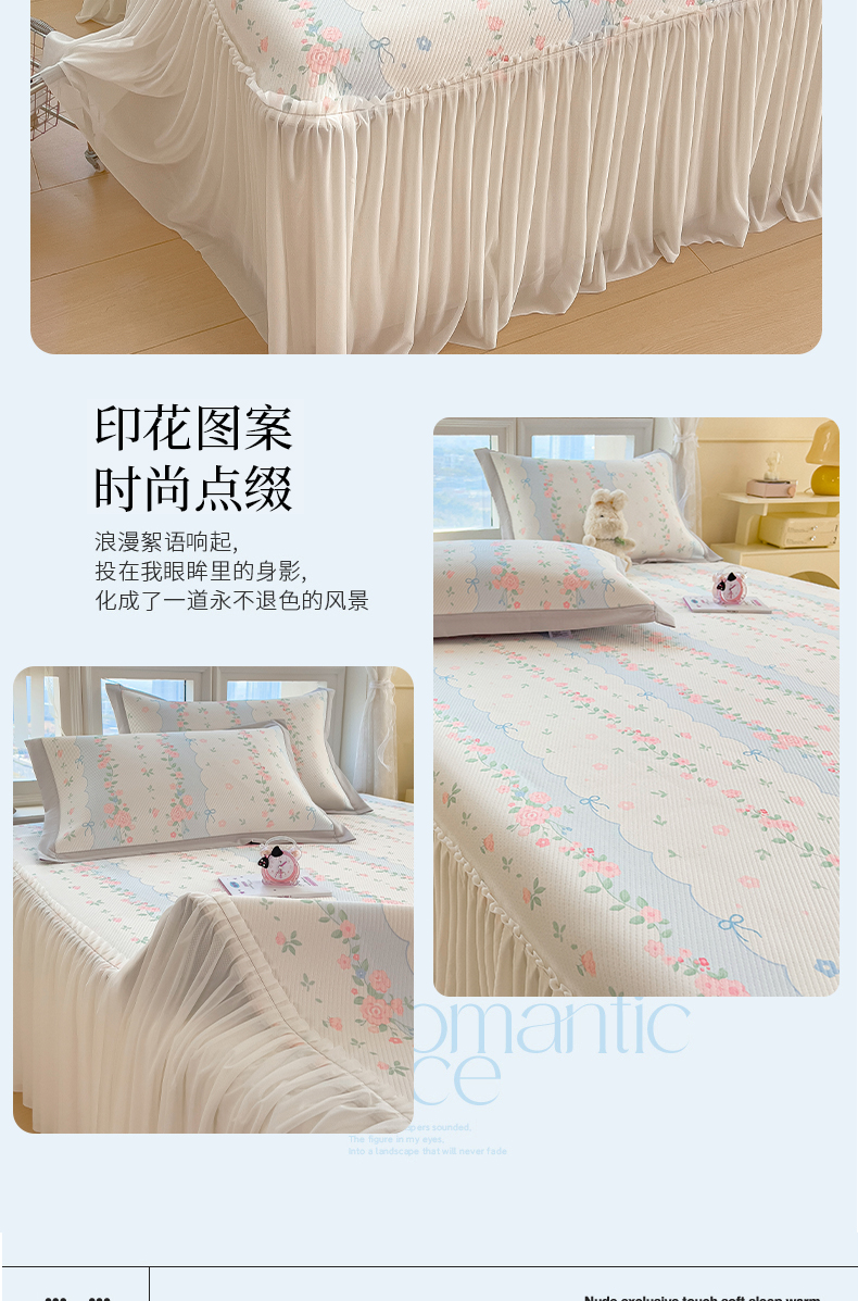 宜派家纺 2026新款夏季花卉冰丝床裙席凉感值过0.21单件夏天冰豆豆A类可机洗学生宿舍空调软席 牡丹粉-床裙