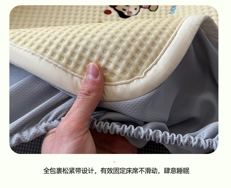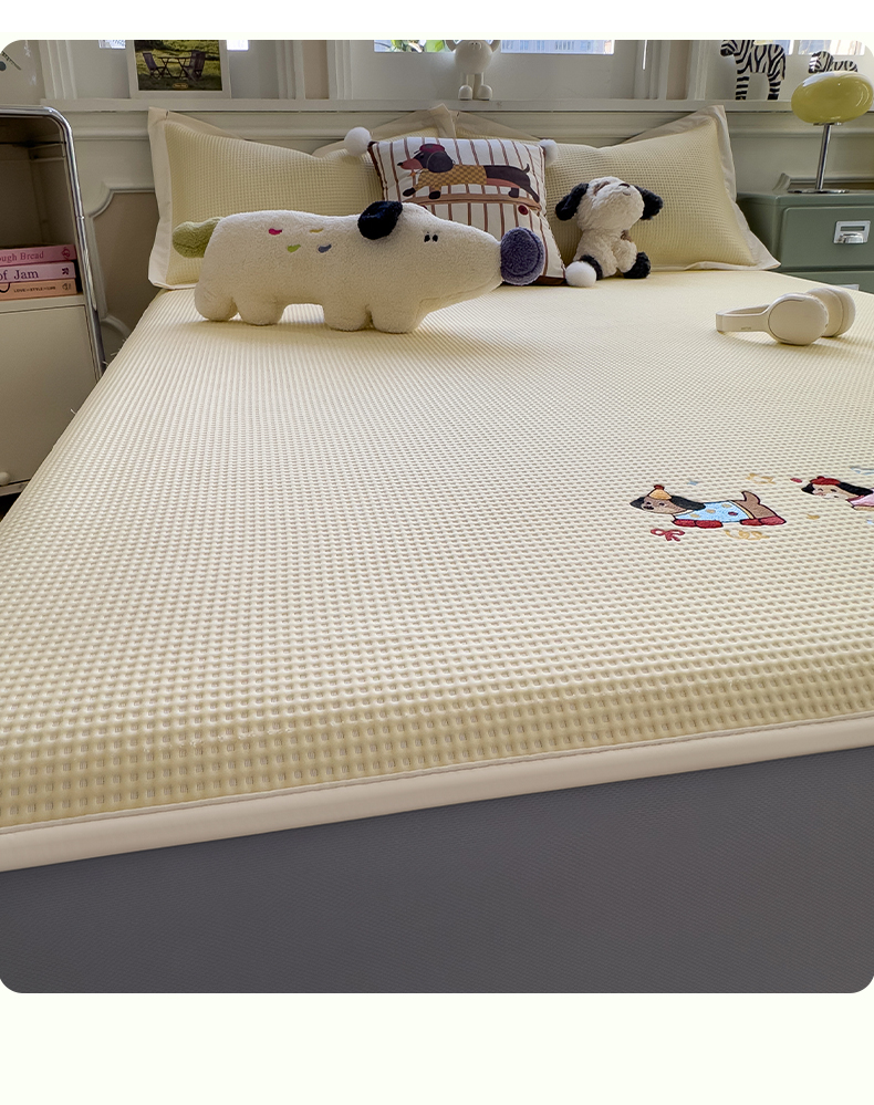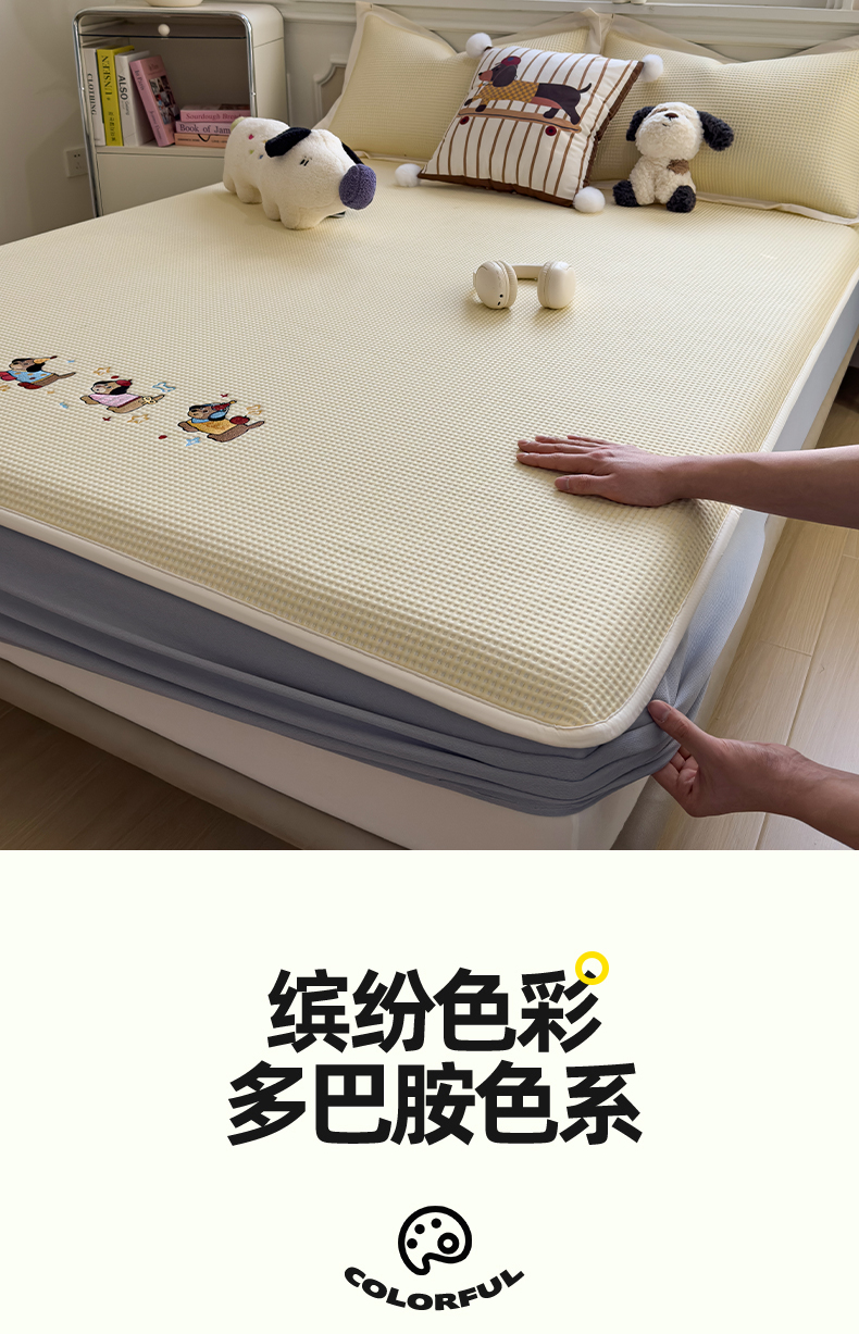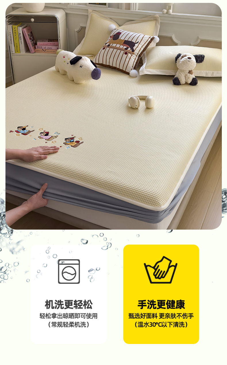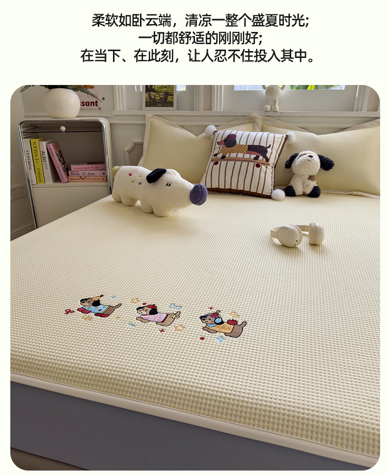宜派家纺 2026新款乙纶冰豆豆凉席卡通刺绣印花小红书爆款凉豆豆绣花床席凉感值过0.21冰丝席 趣味腊肠狗-床笠
