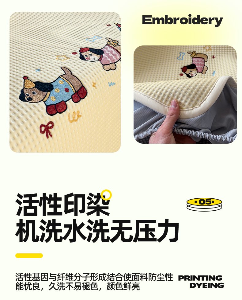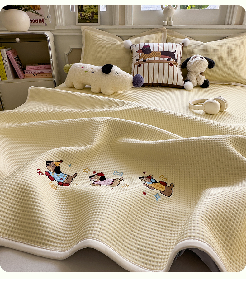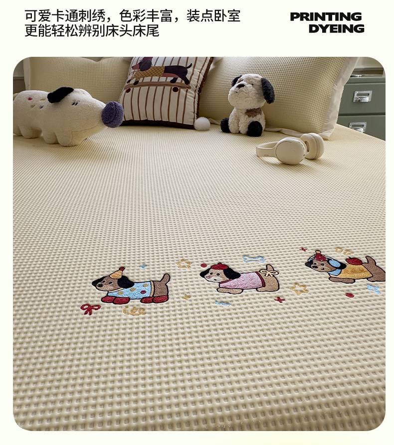 商品名称:宜派家纺 2026新款乙纶冰豆豆凉席卡通刺绣印花小红书爆款凉豆豆绣花床席凉感值过0.21冰丝席 趣味腊肠狗-床笠