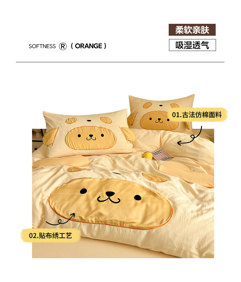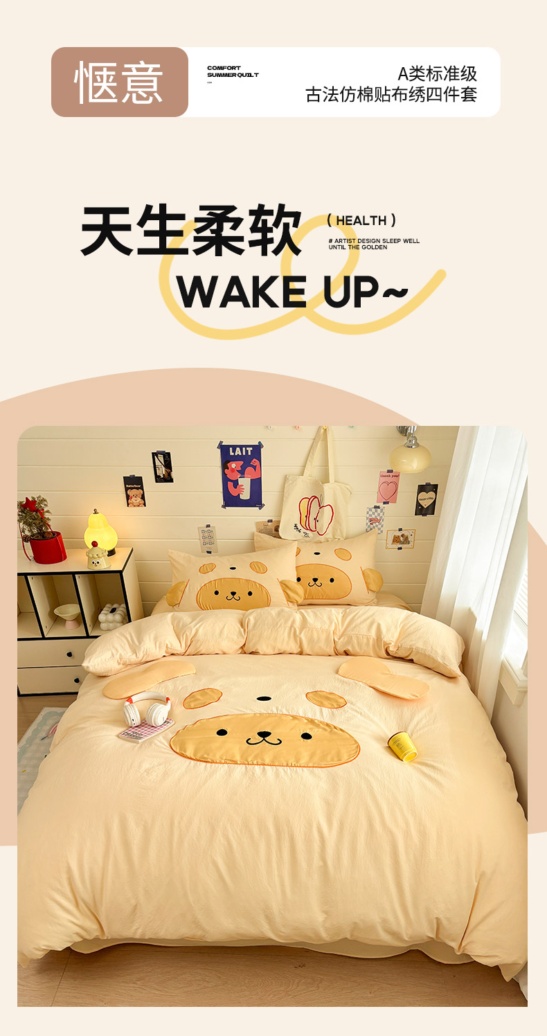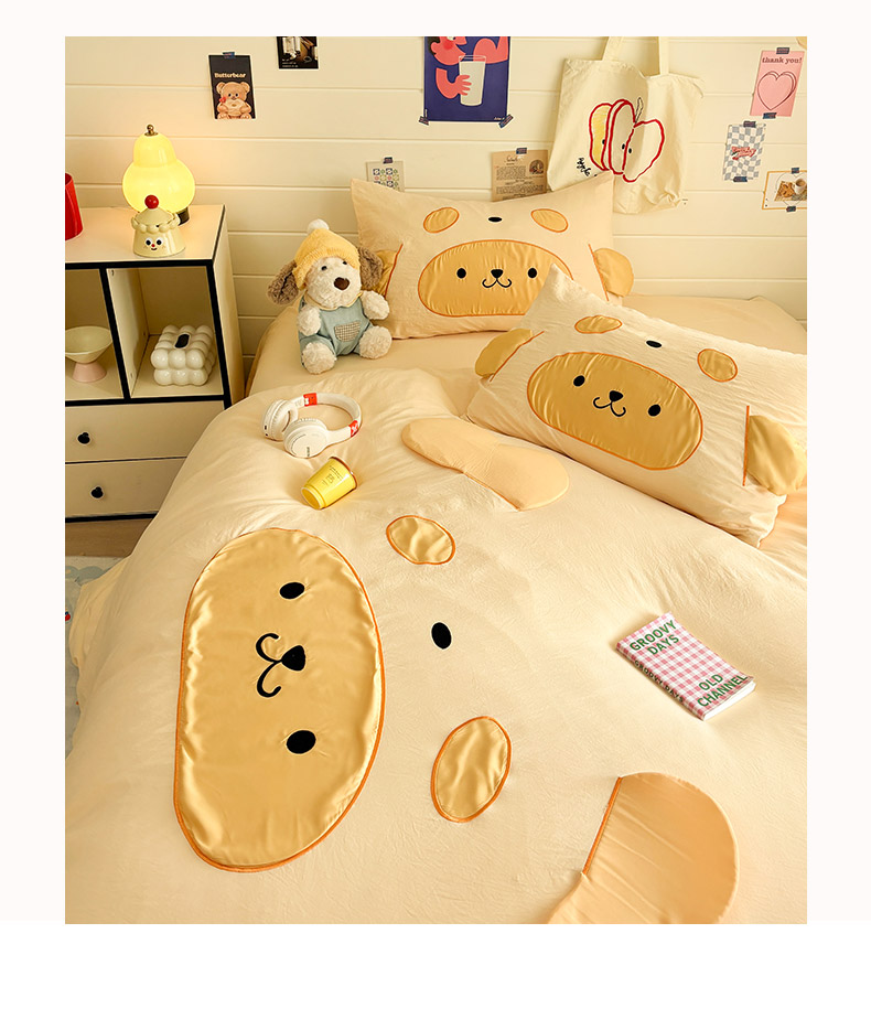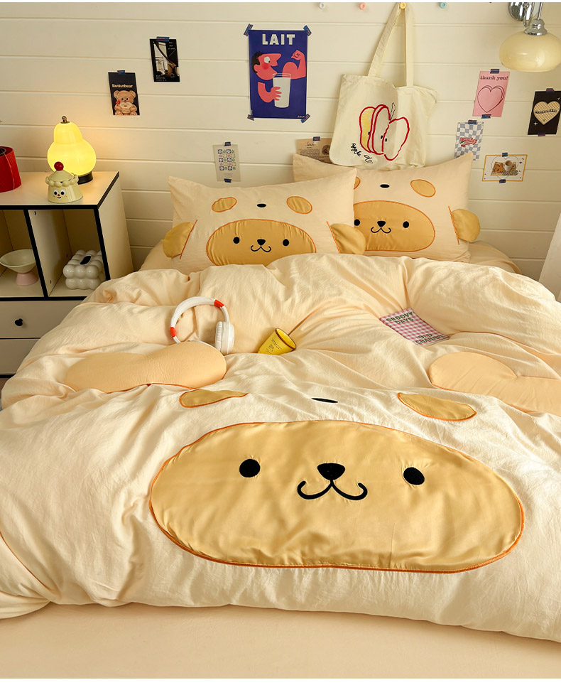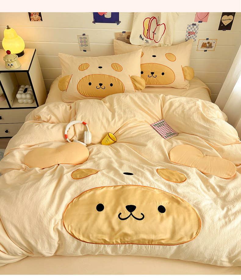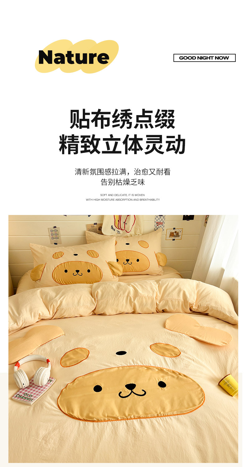 色鬼布艺高端家居主号 2026新款韩国设计师款仿古棉可爱毛巾绣四件套 快乐狗狗-黄