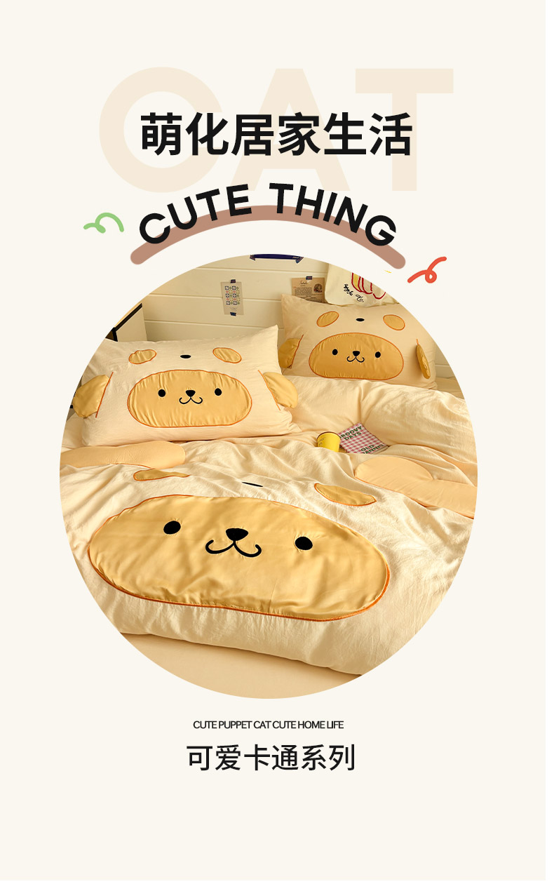 商品名称:色鬼布艺高端家居主号 2026新款韩国设计师款仿古棉可爱毛巾绣四件套 快乐狗狗-黄