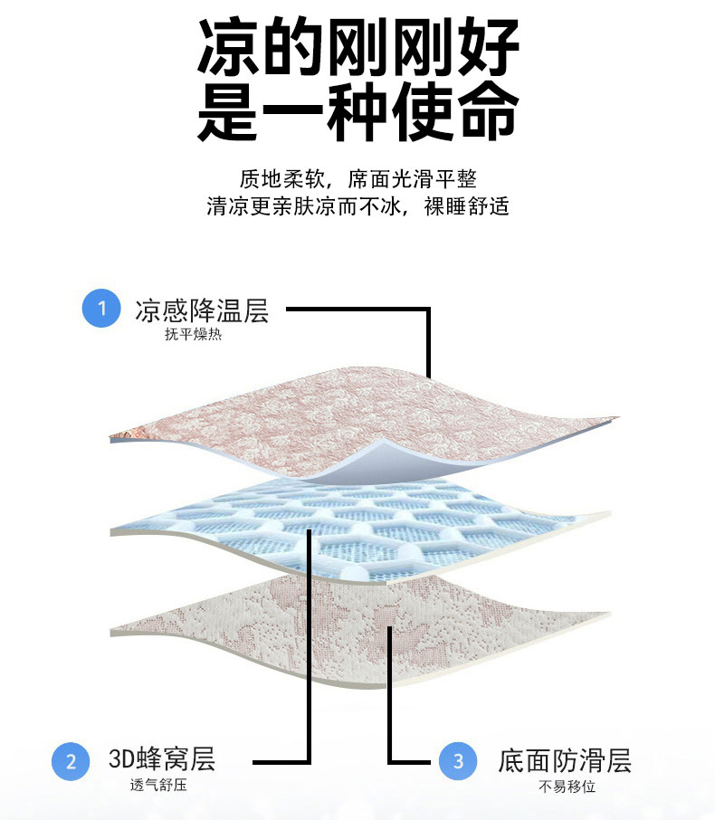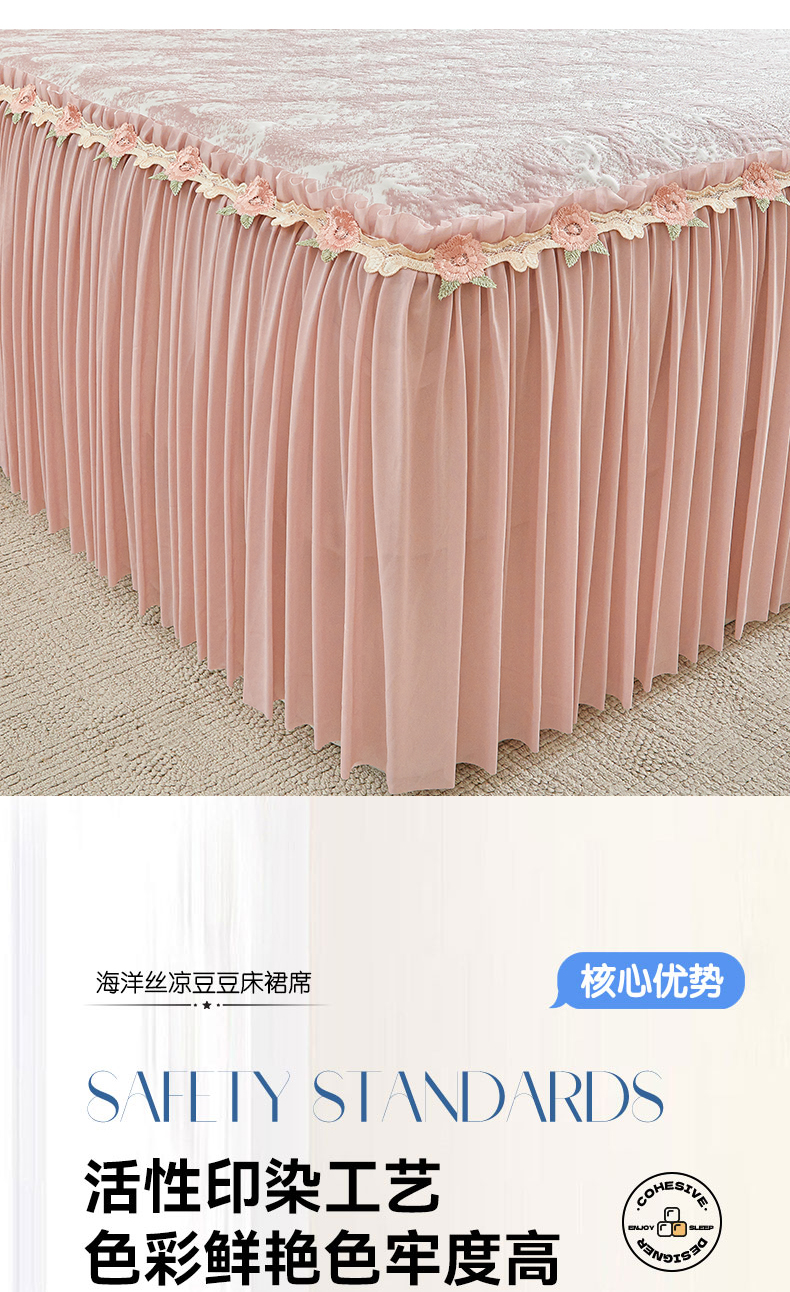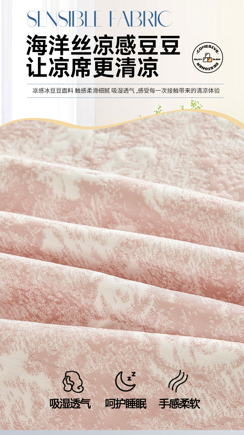 • 91家纺网 家纺一手货源 找家纺 (总)好儿喜家纺 2026新款A类海洋丝豆豆床裙凉席席子凉席三件套-莫奈玫瑰