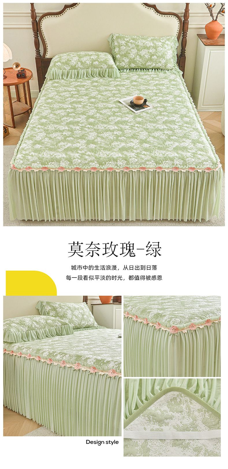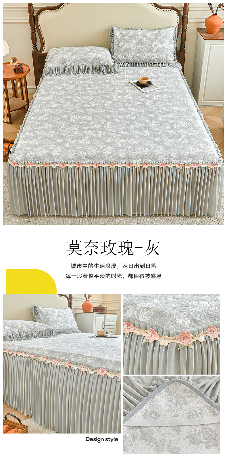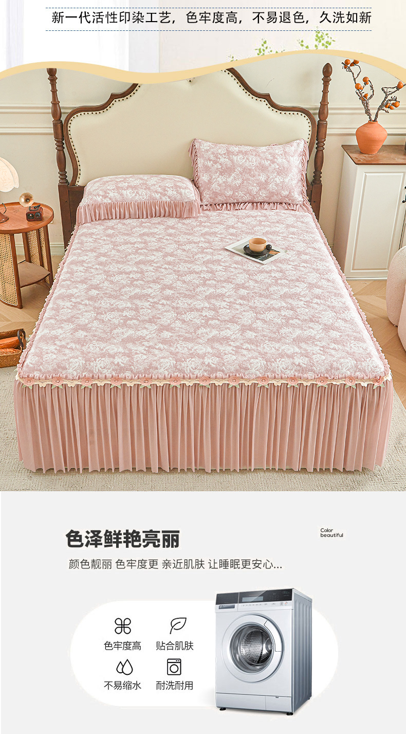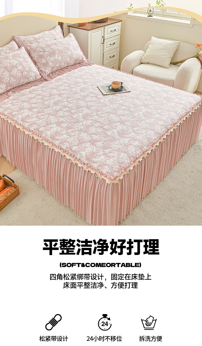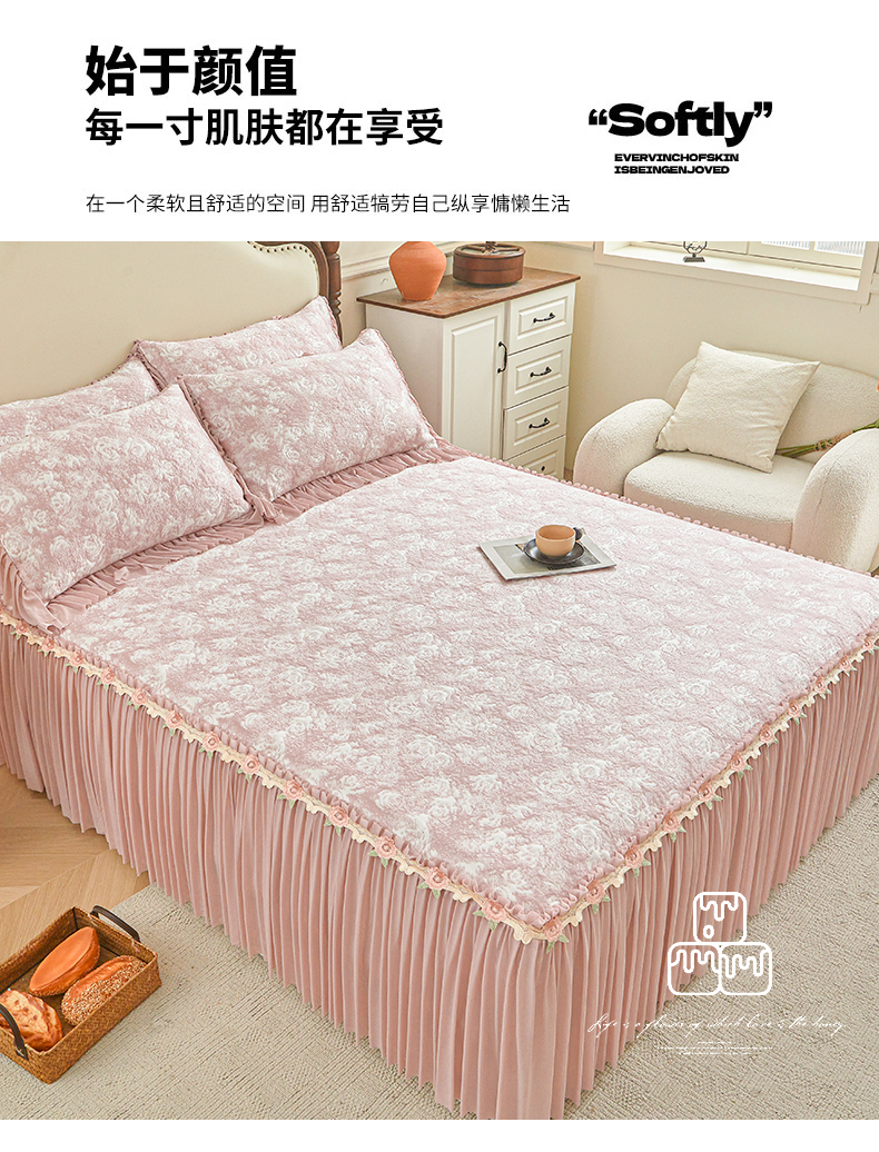 • 91家纺网 家纺一手货源 找家纺 (总)好儿喜家纺 2026新款纯棉磨毛法式花边床裙四件套-简爱,简爱