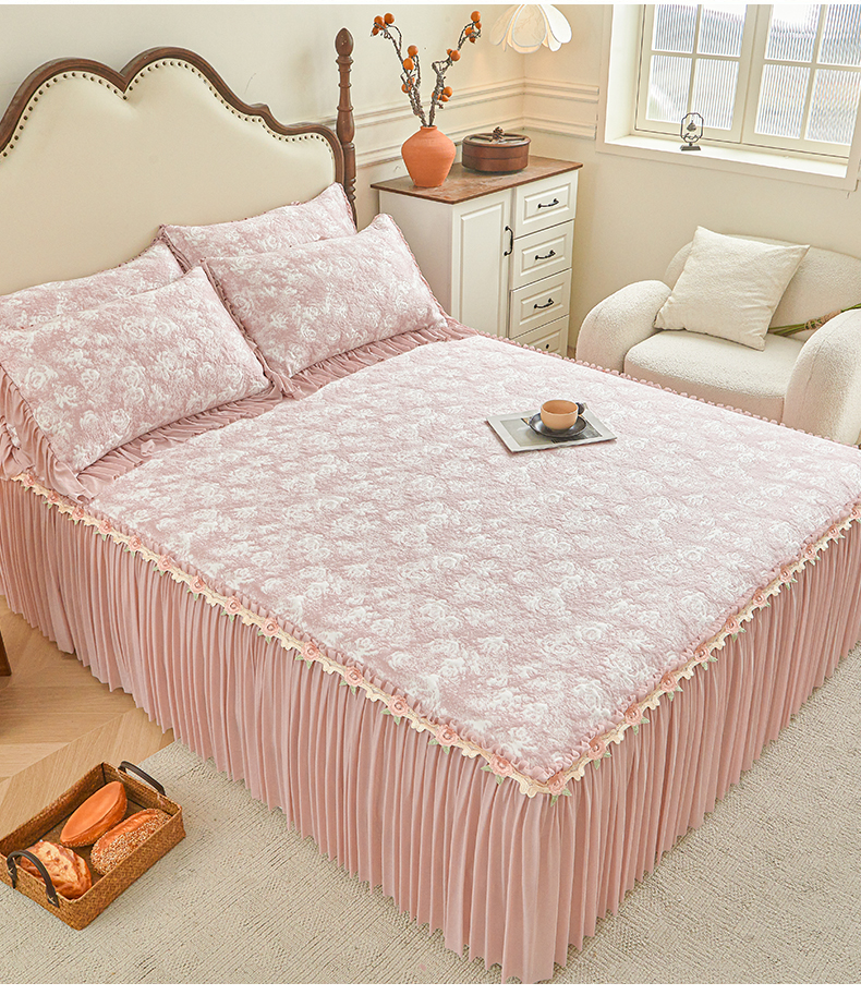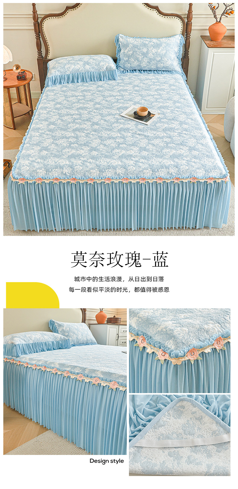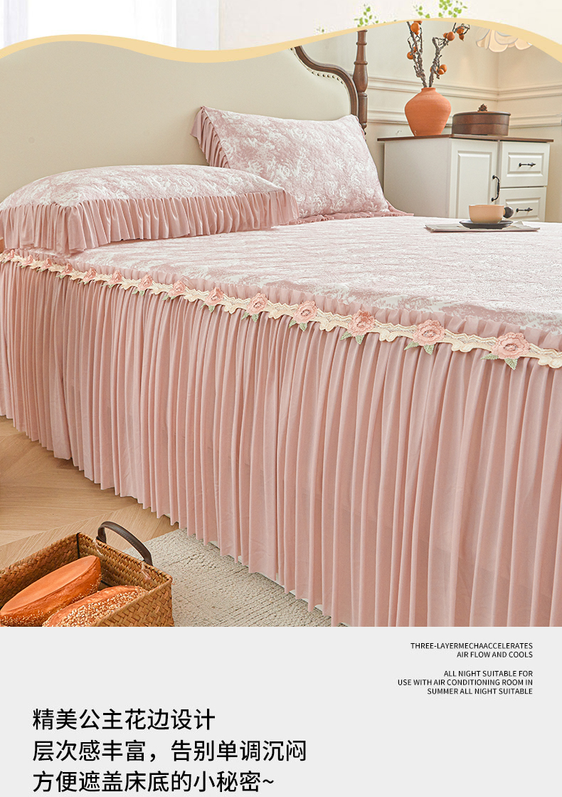 • 91家纺网 家纺一手货源 找家纺 (总)好儿喜家纺 2026新款纯棉磨毛法式花边床裙四件套-布兰卡,布兰卡
