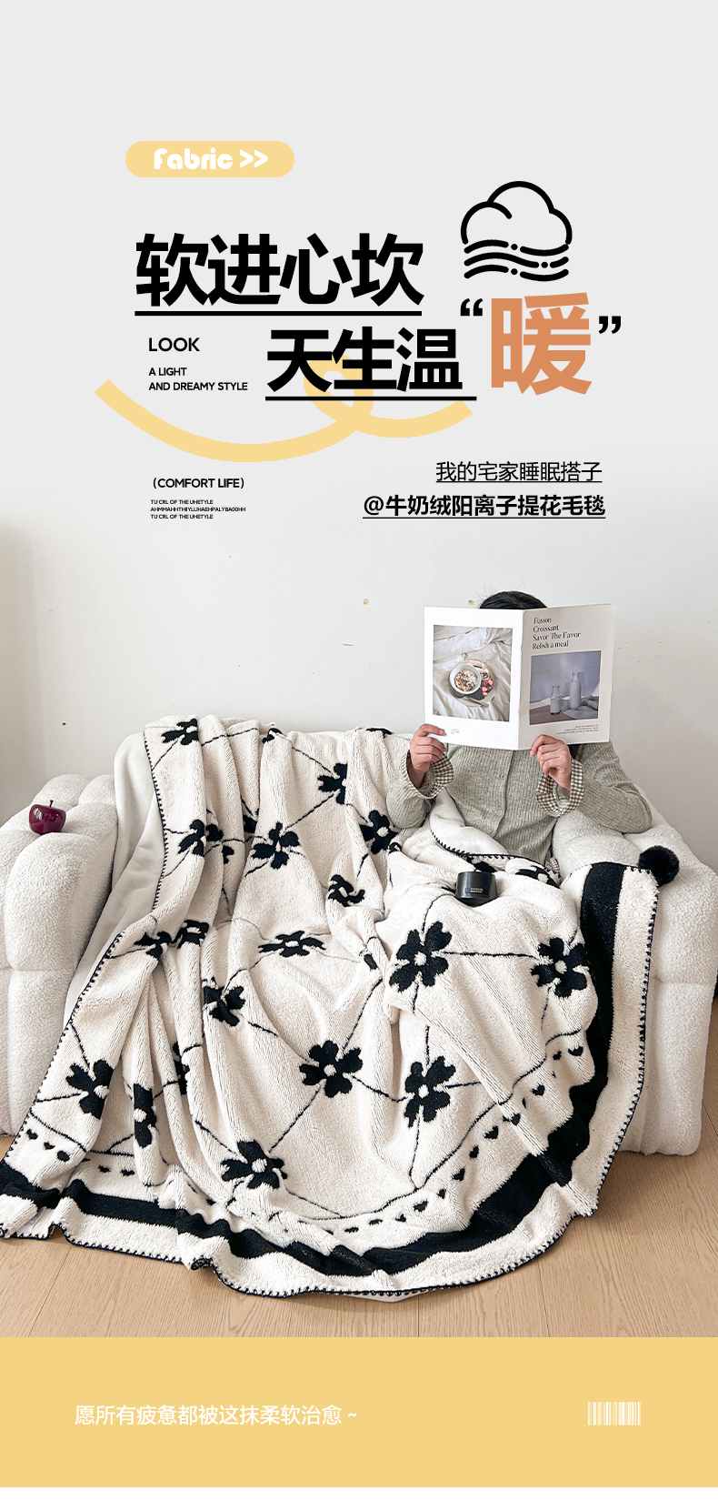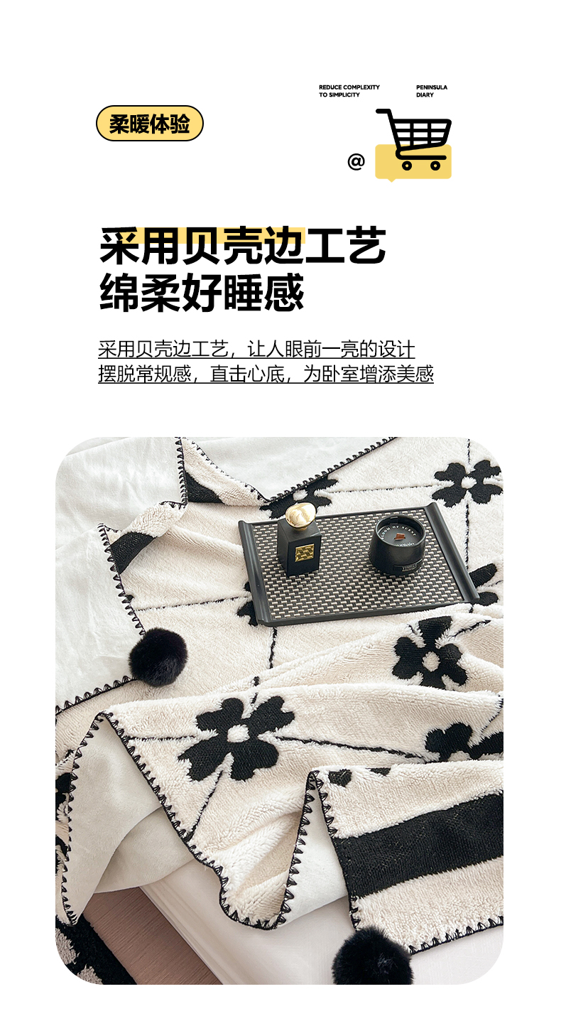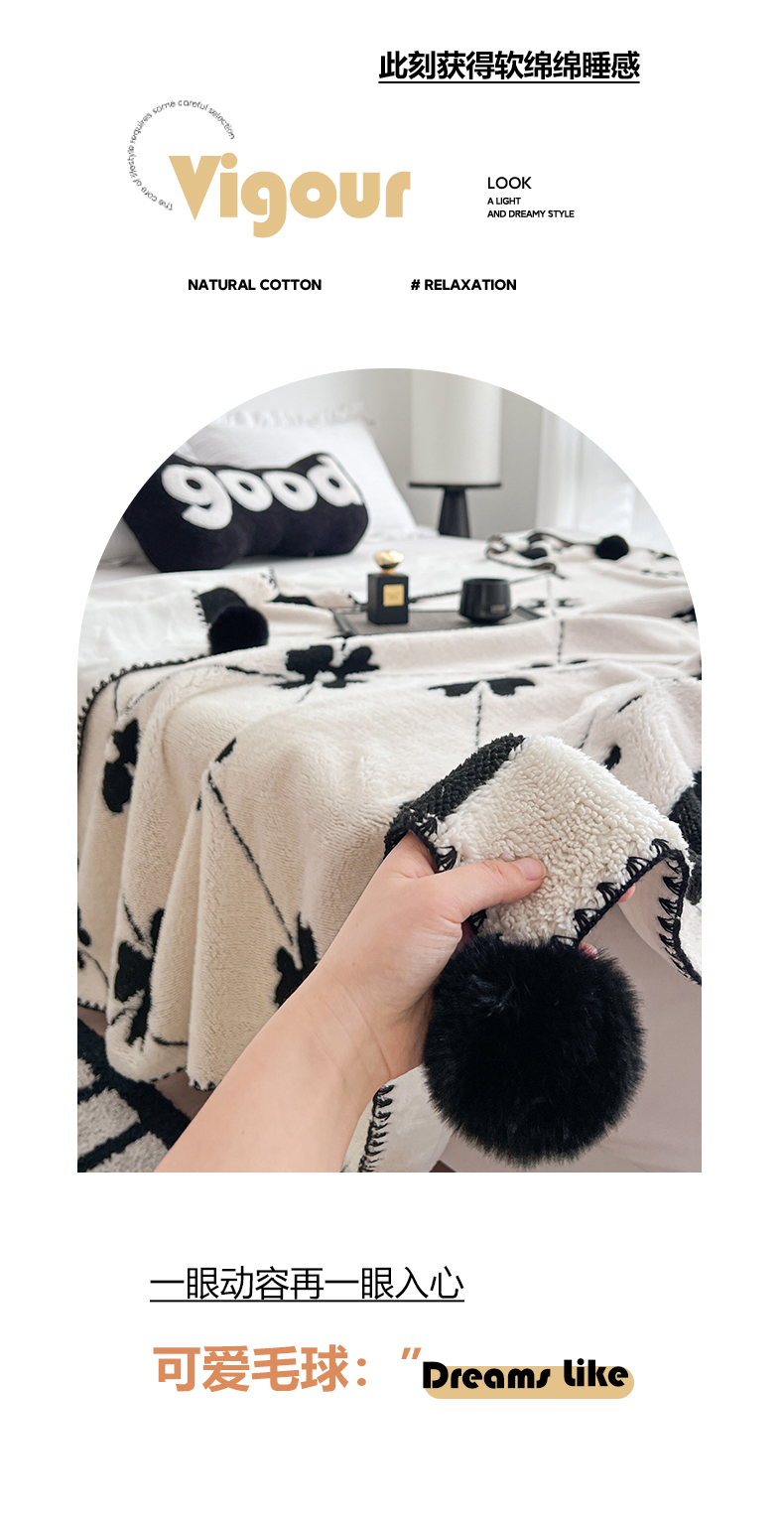 娜朵家纺 2026新款阳离子牛奶绒双层毛球复合毯 齐花绽放