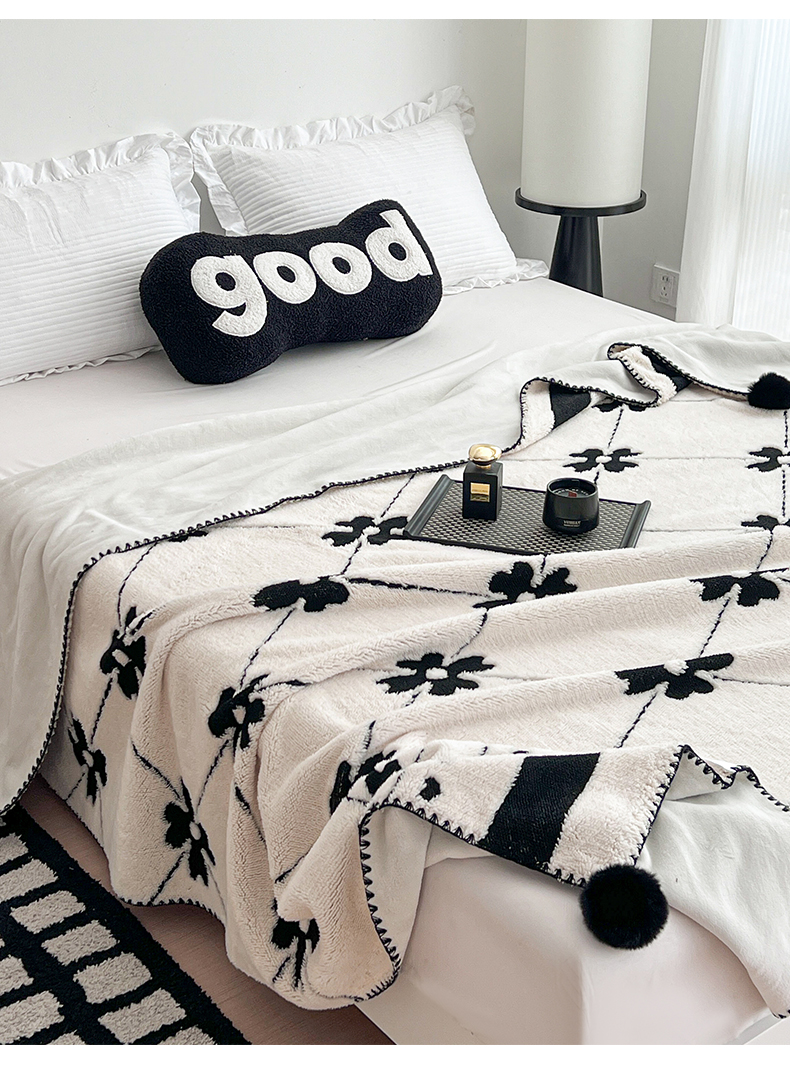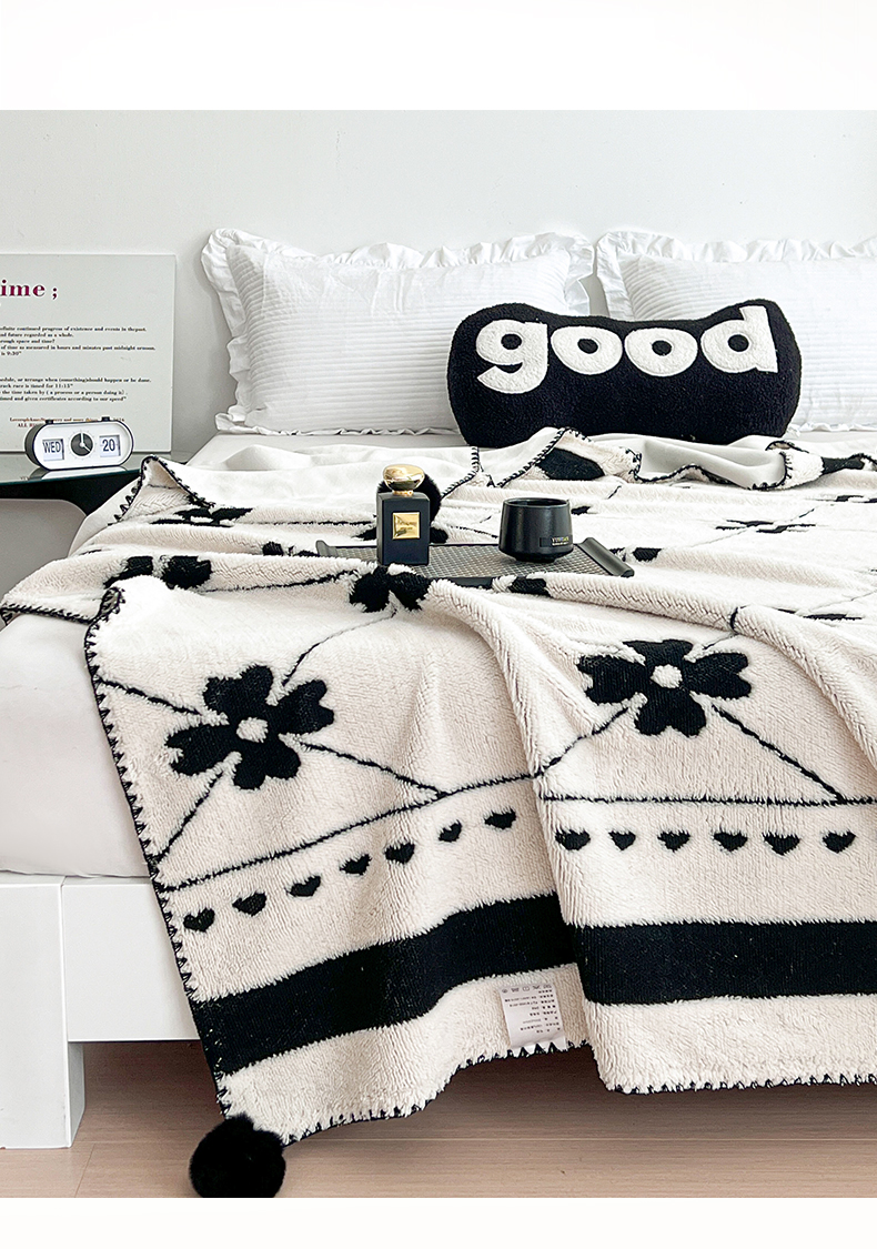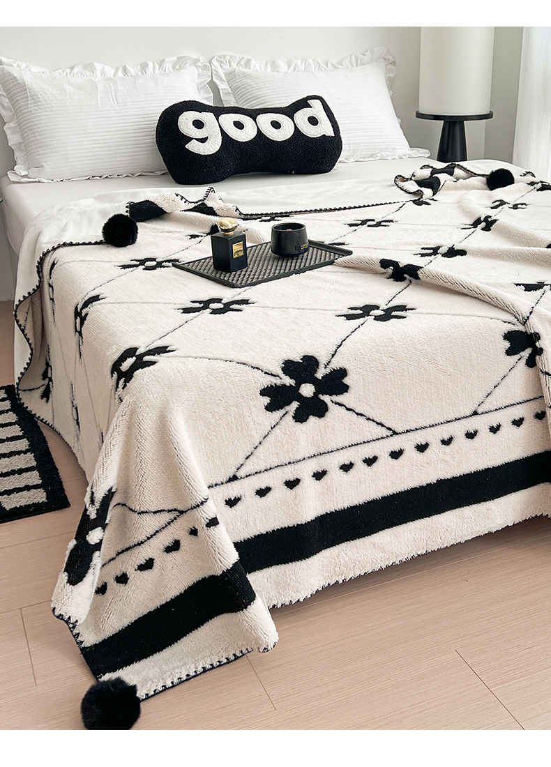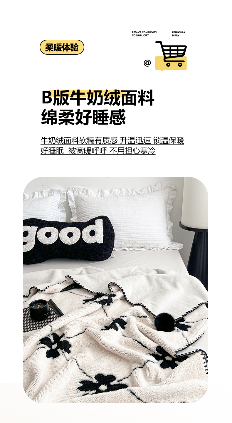 娜朵家纺 2026新款阳离子牛奶绒双层毛球复合毯 齐花绽放
