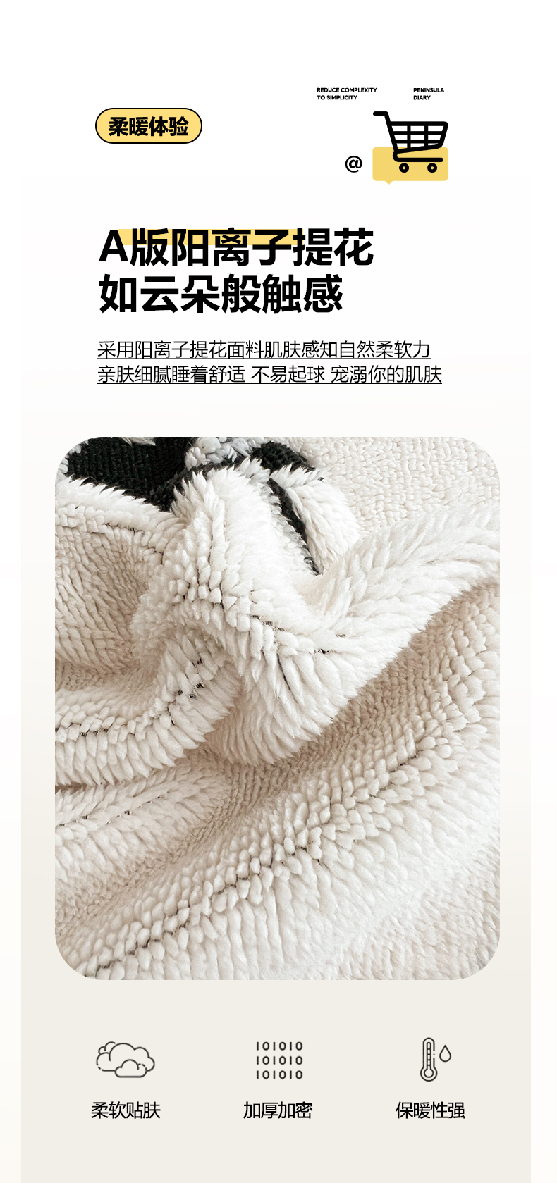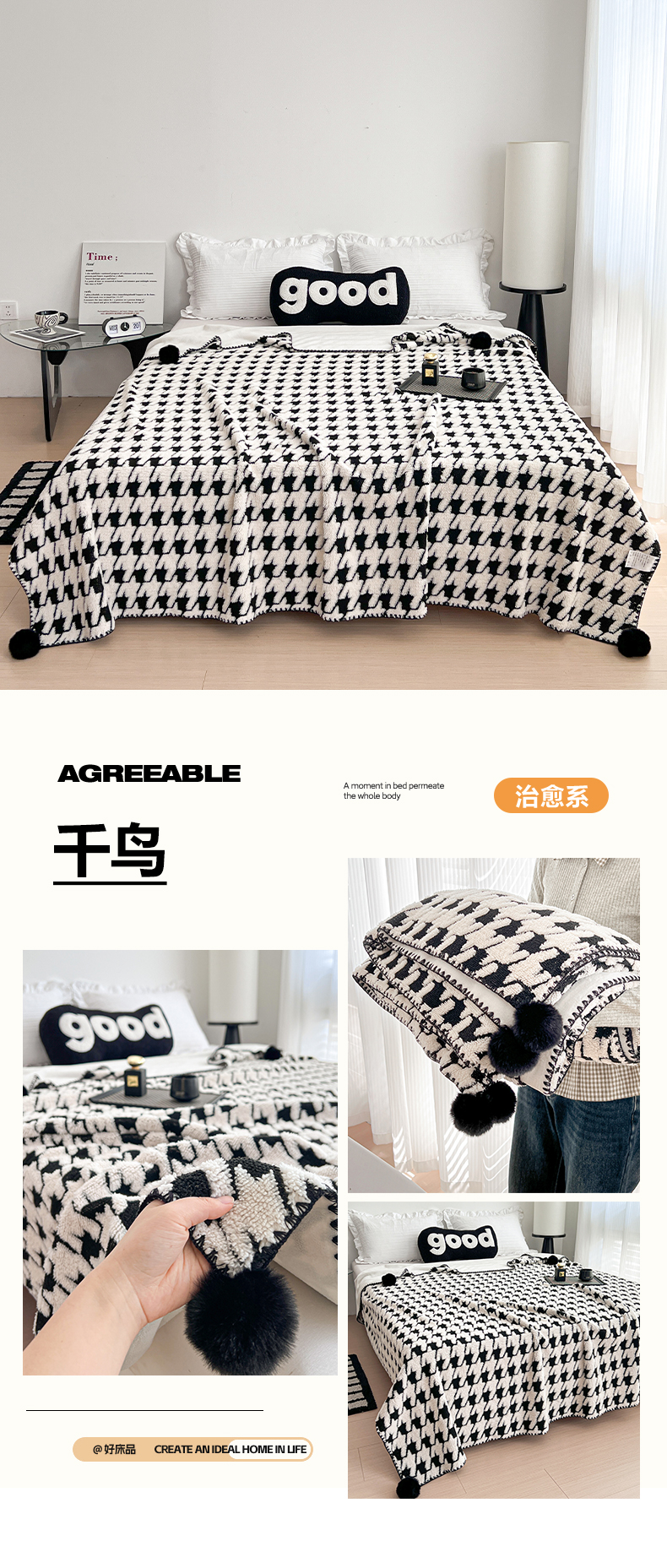 (总)娜朵家纺 2026新款阳离子牛奶绒双层毛球复合毯,千鸟,黑白森林,波浪,步步高升,齐花绽放,组合图