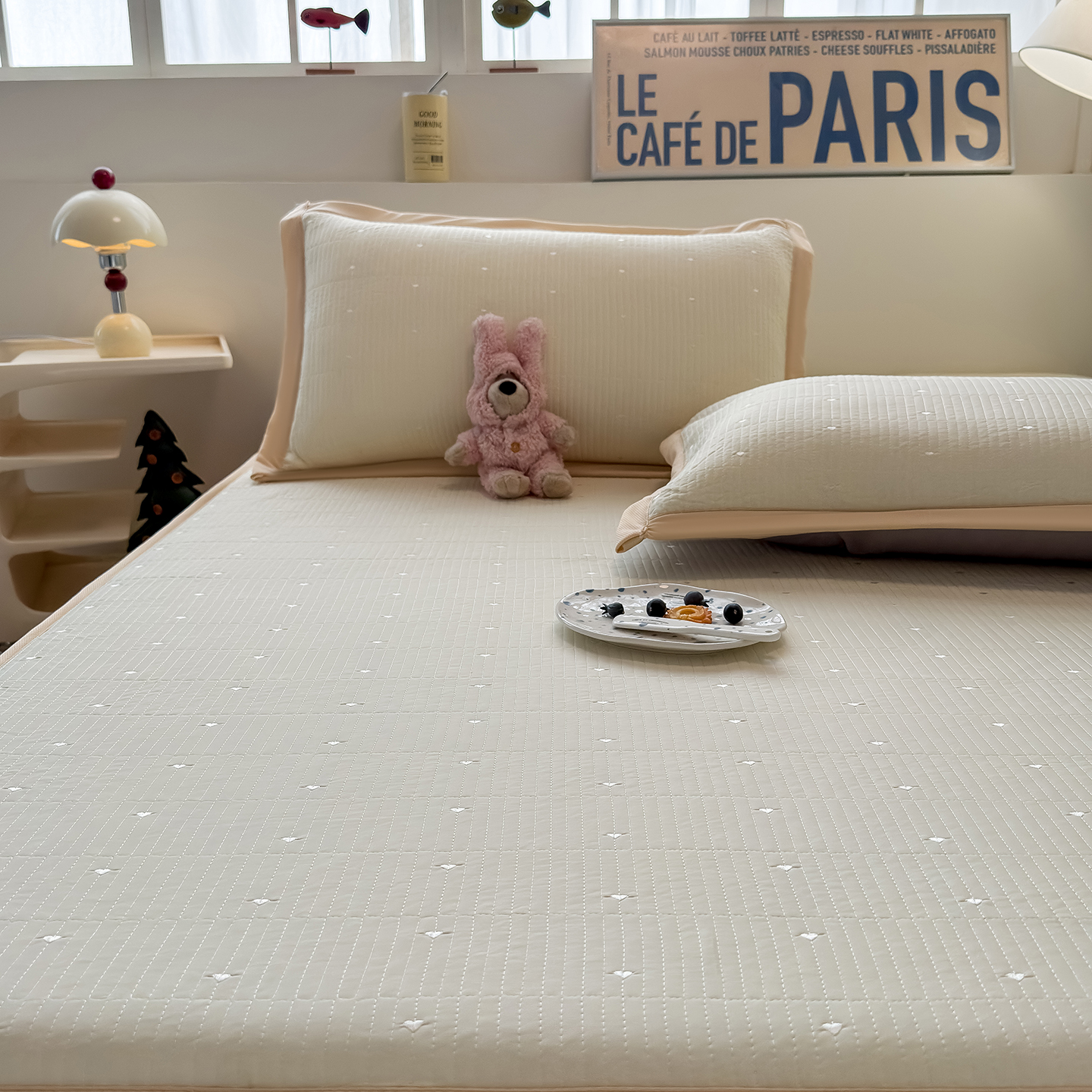 懒猫家纺 2026新款满天星绗绣莫兰迪色系床席床笠款凉席 香草布蕾-床席款