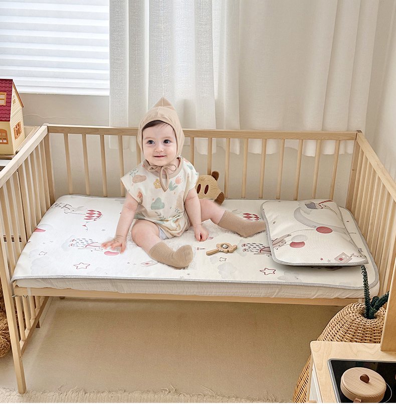 (总)橘滋 2025夏日新款高端A类原创设计婴儿童趣卡通数码印花冰丝席凉席-床席床笠,大眼熊仔,叠叠乐园,蝴蝶结兔兔,欢乐曲奇,木马小熊,太空冒险,熊猫胖达