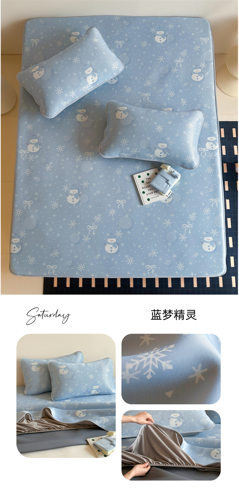 商品名称:JUICY 橘滋家纺 2026新款CoolAir沁氧数码印花冰感软凉席 蓝梦精灵-床笠款