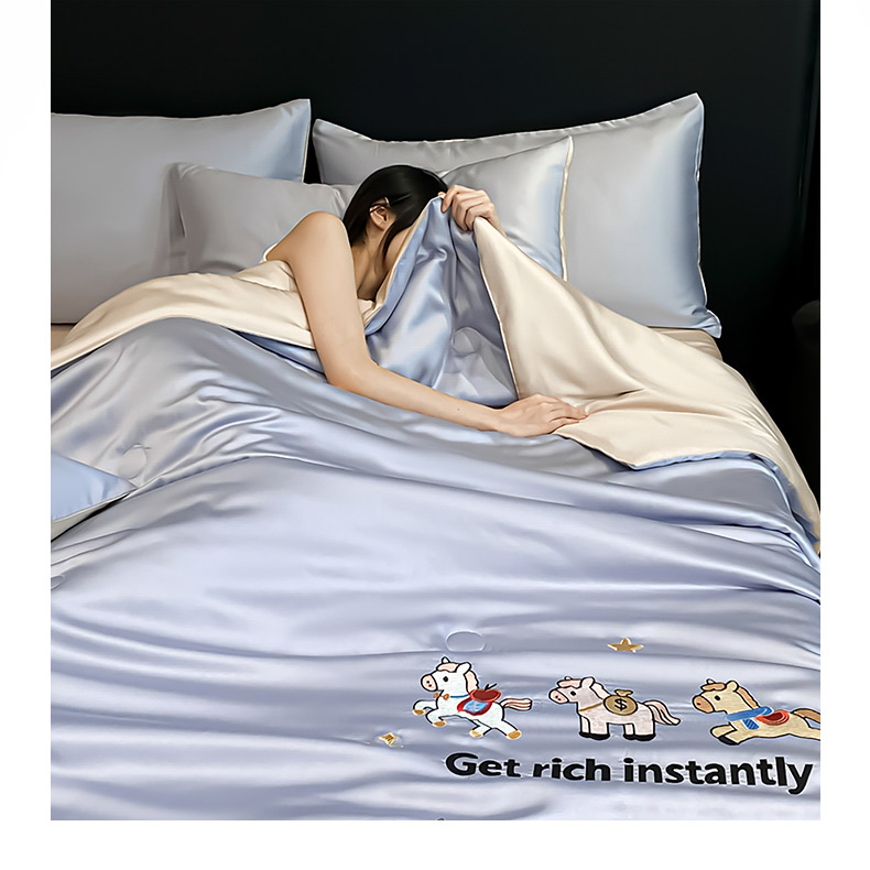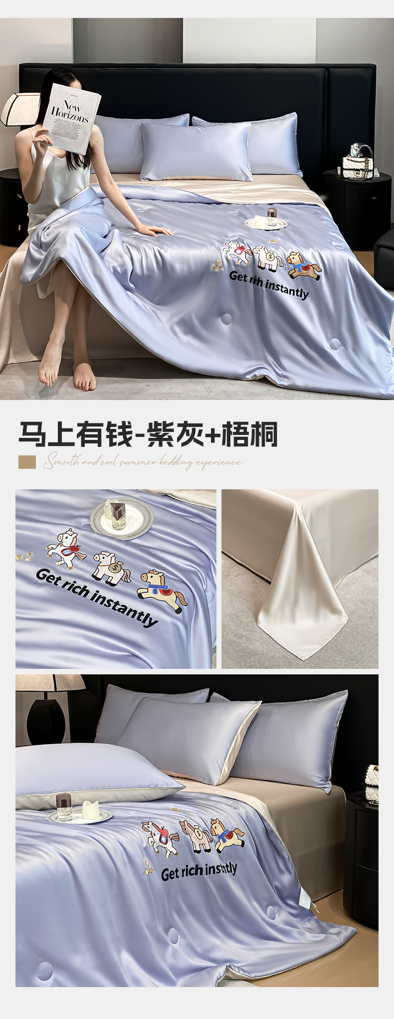 • 91家纺网 家纺一手货源 找家纺 利欧 2026新款水洗天丝刺绣夏被四件套-马上有钱 马上有钱-紫灰+梧桐