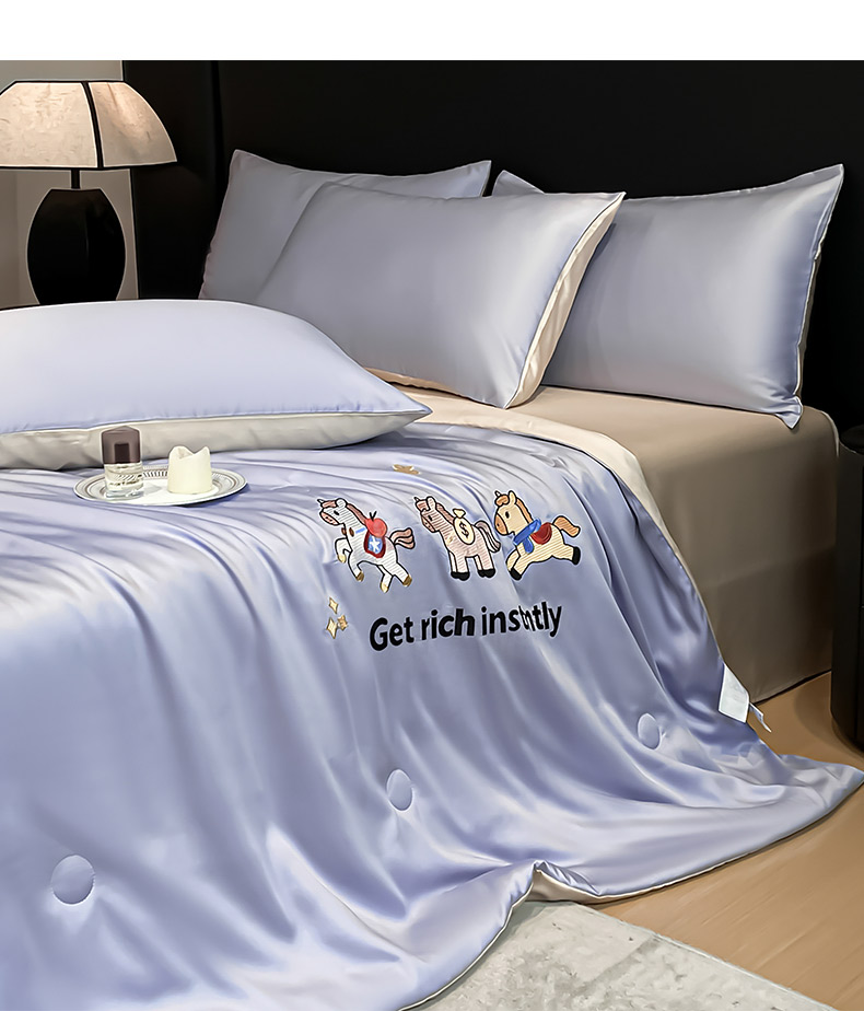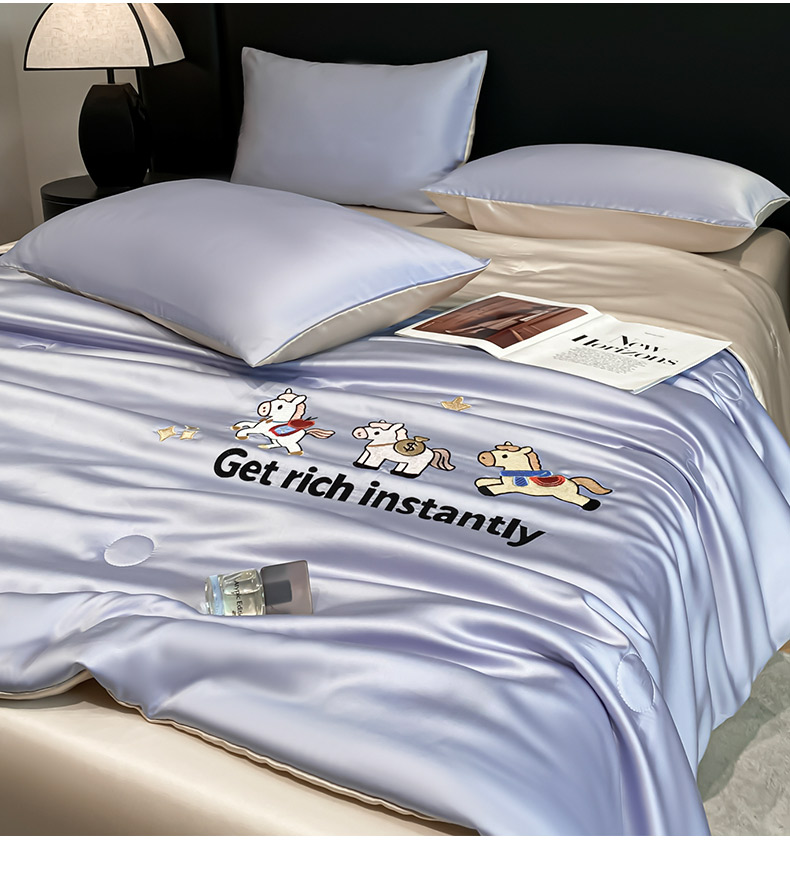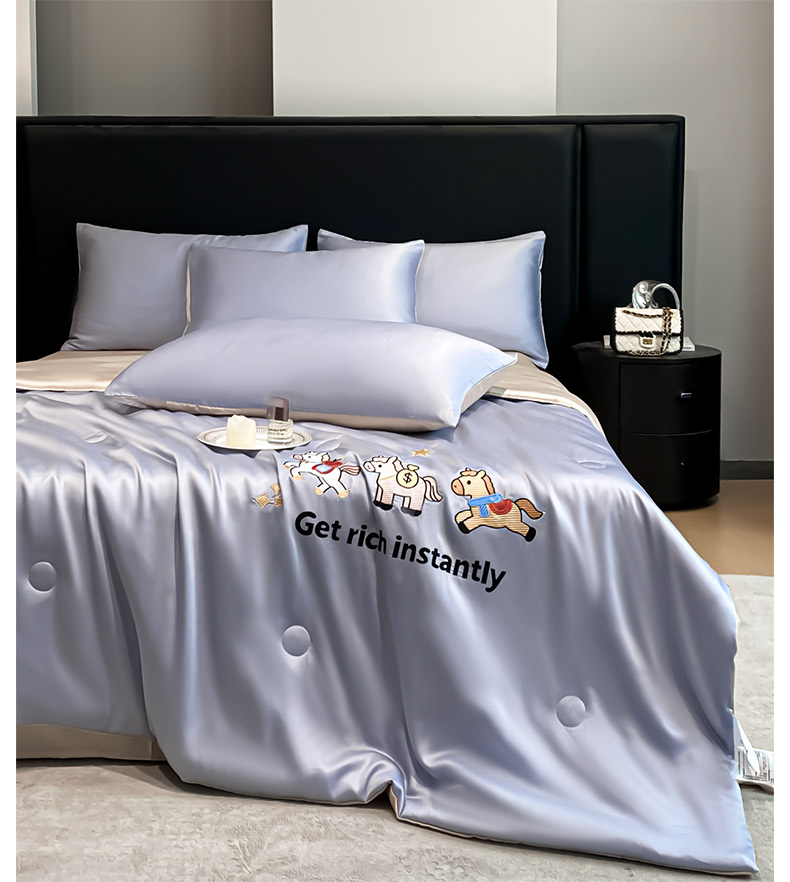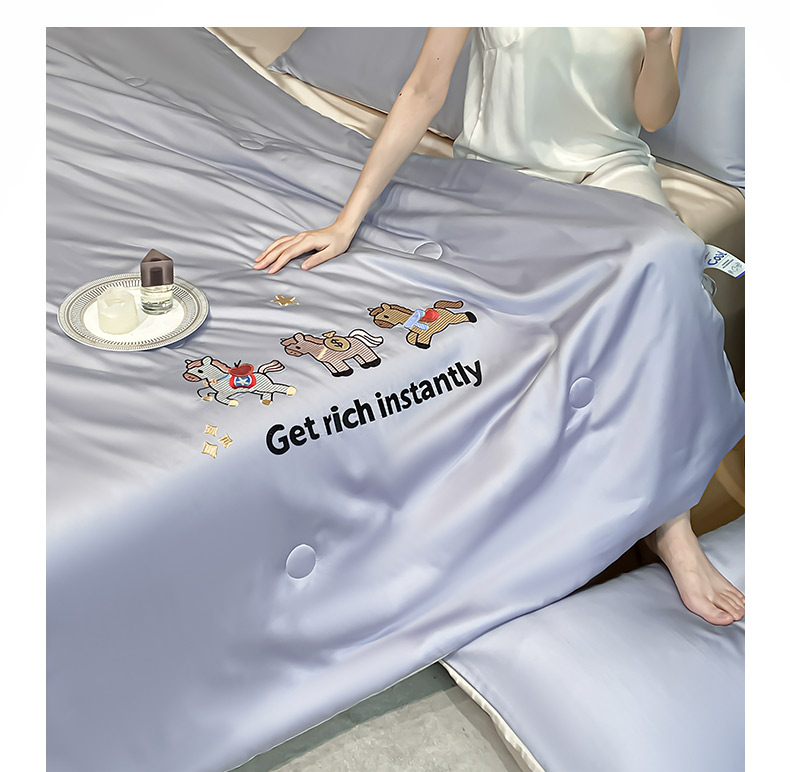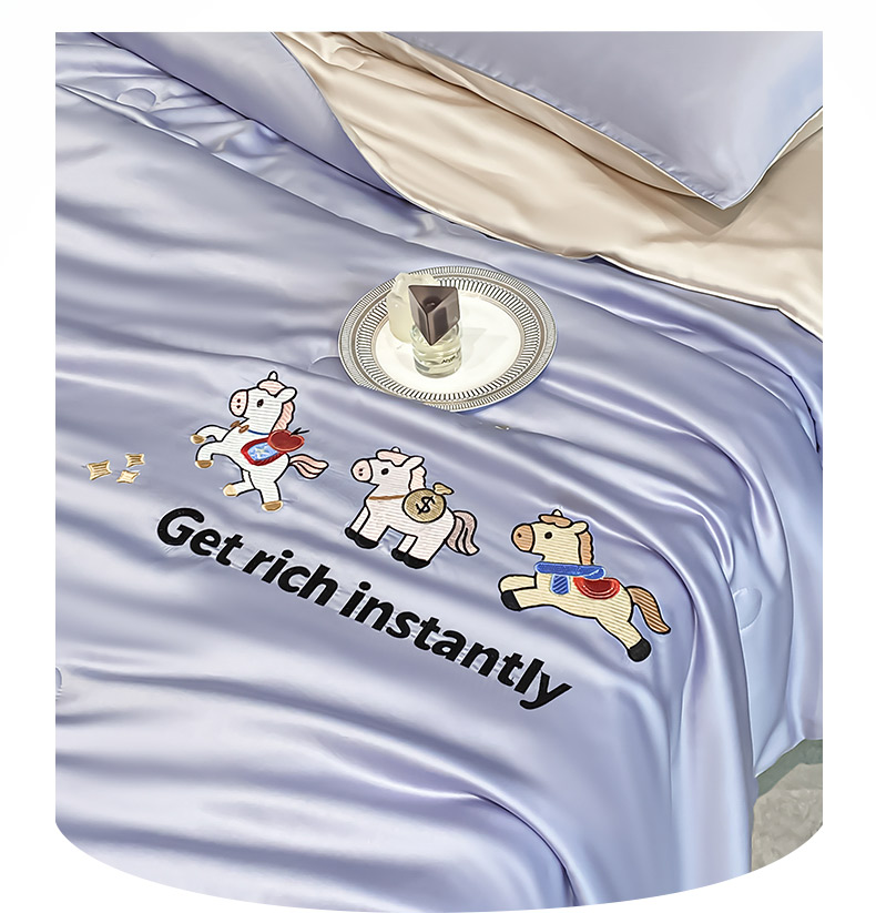 利欧 2026新款水洗天丝刺绣夏被四件套-马上有钱 马上有钱-紫灰+梧桐