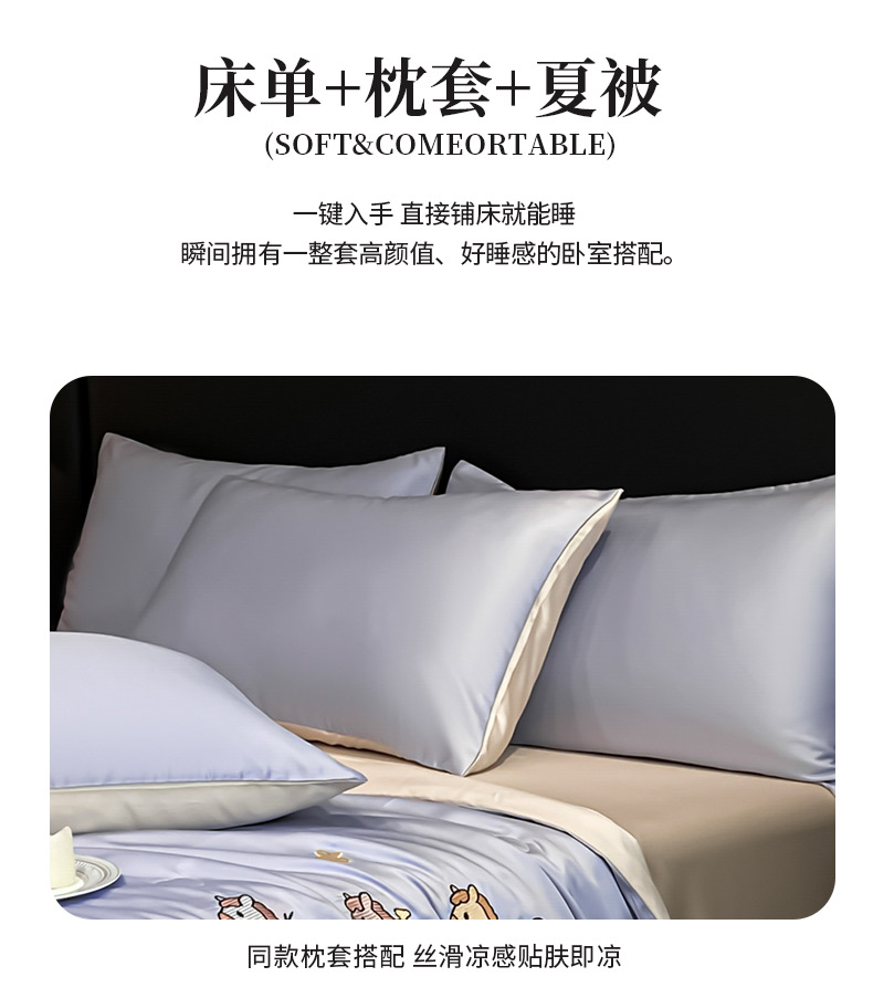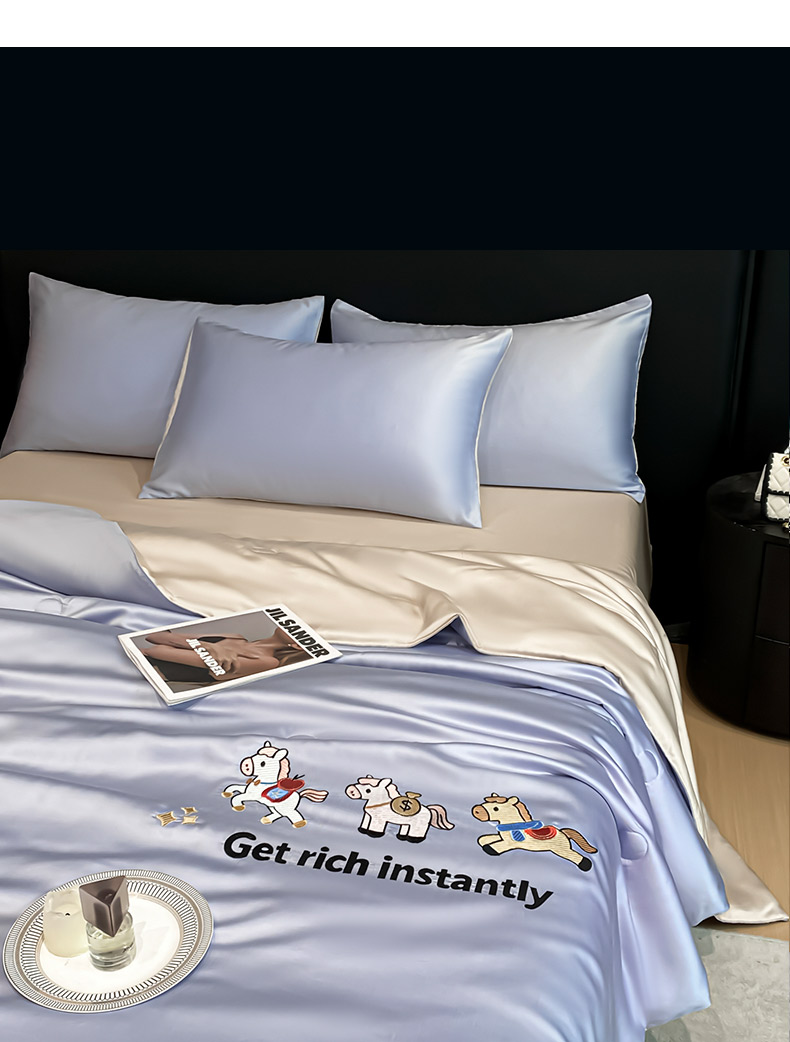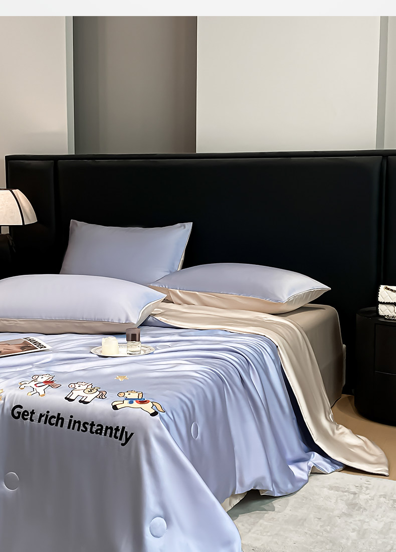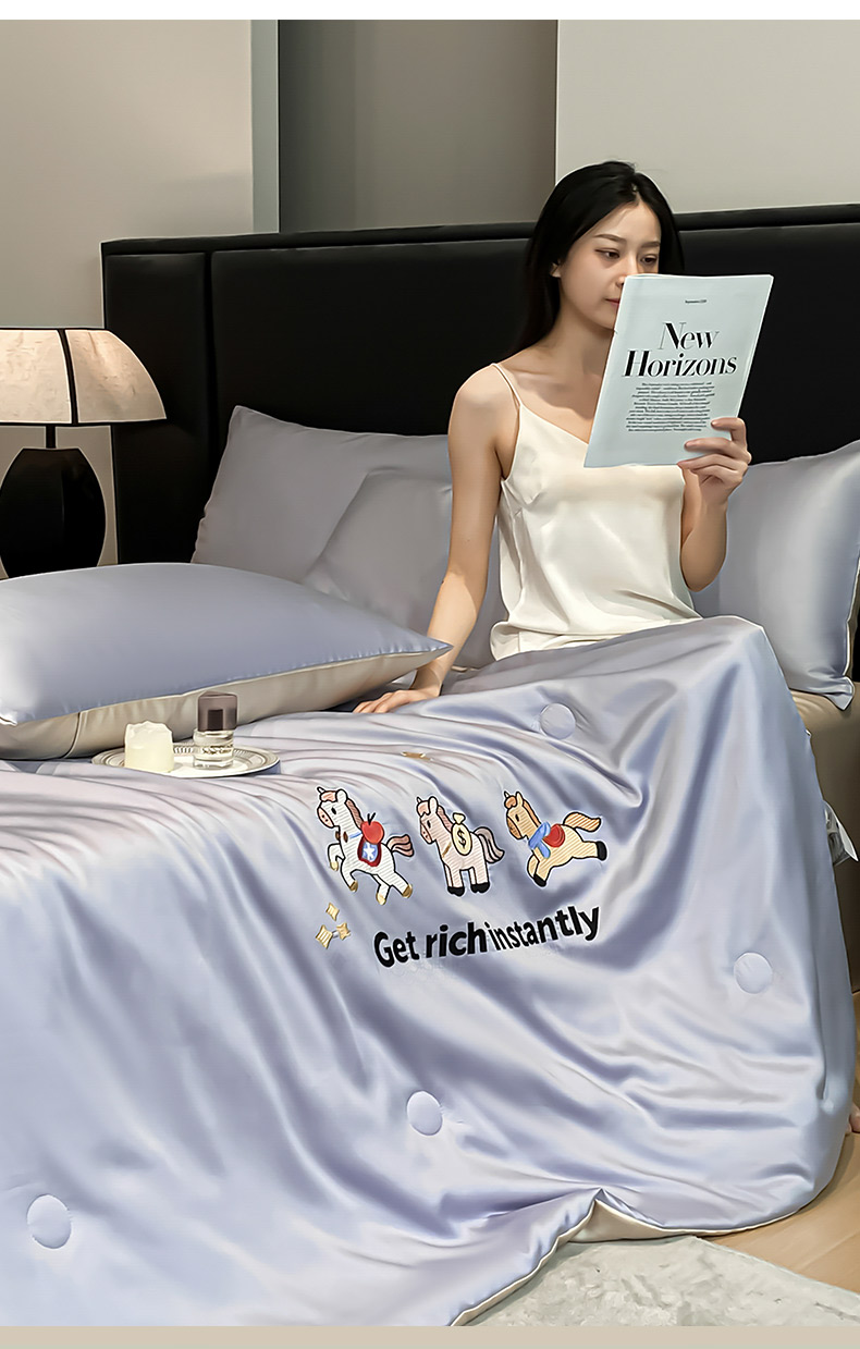 利欧 2026新款水洗天丝刺绣夏被四件套-马上有钱 马上有钱-紫灰+梧桐