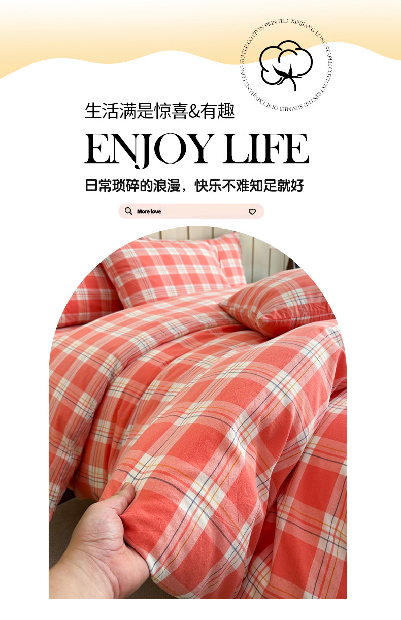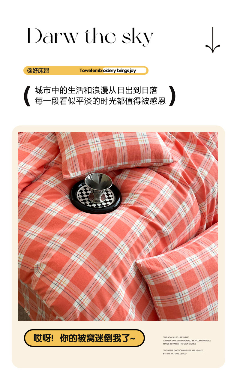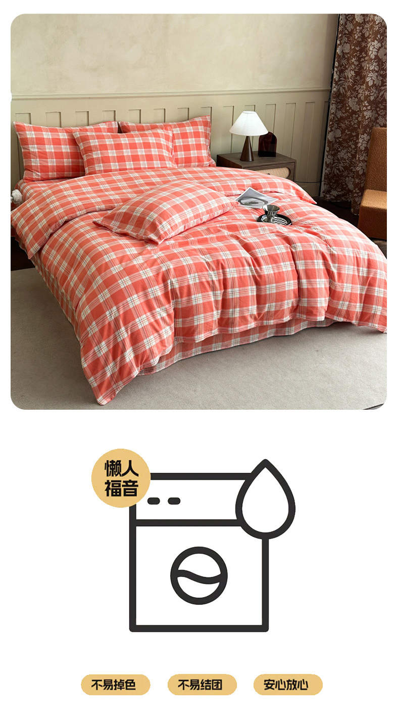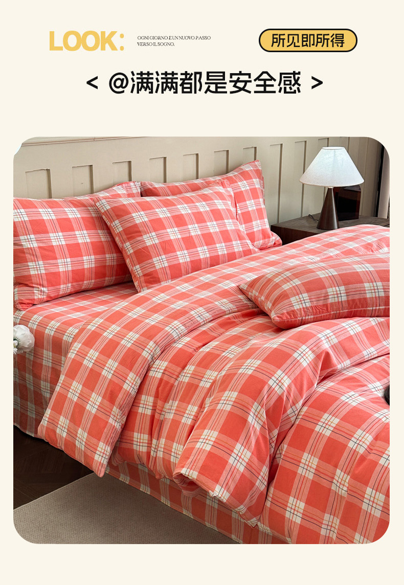 (总)蓝梦 2026新款全棉纯棉色织水洗棉简约四件套-大格,艾格绿,鹅黄,可可灰,蓝粉格,桃粉,优雅兰,宝利格