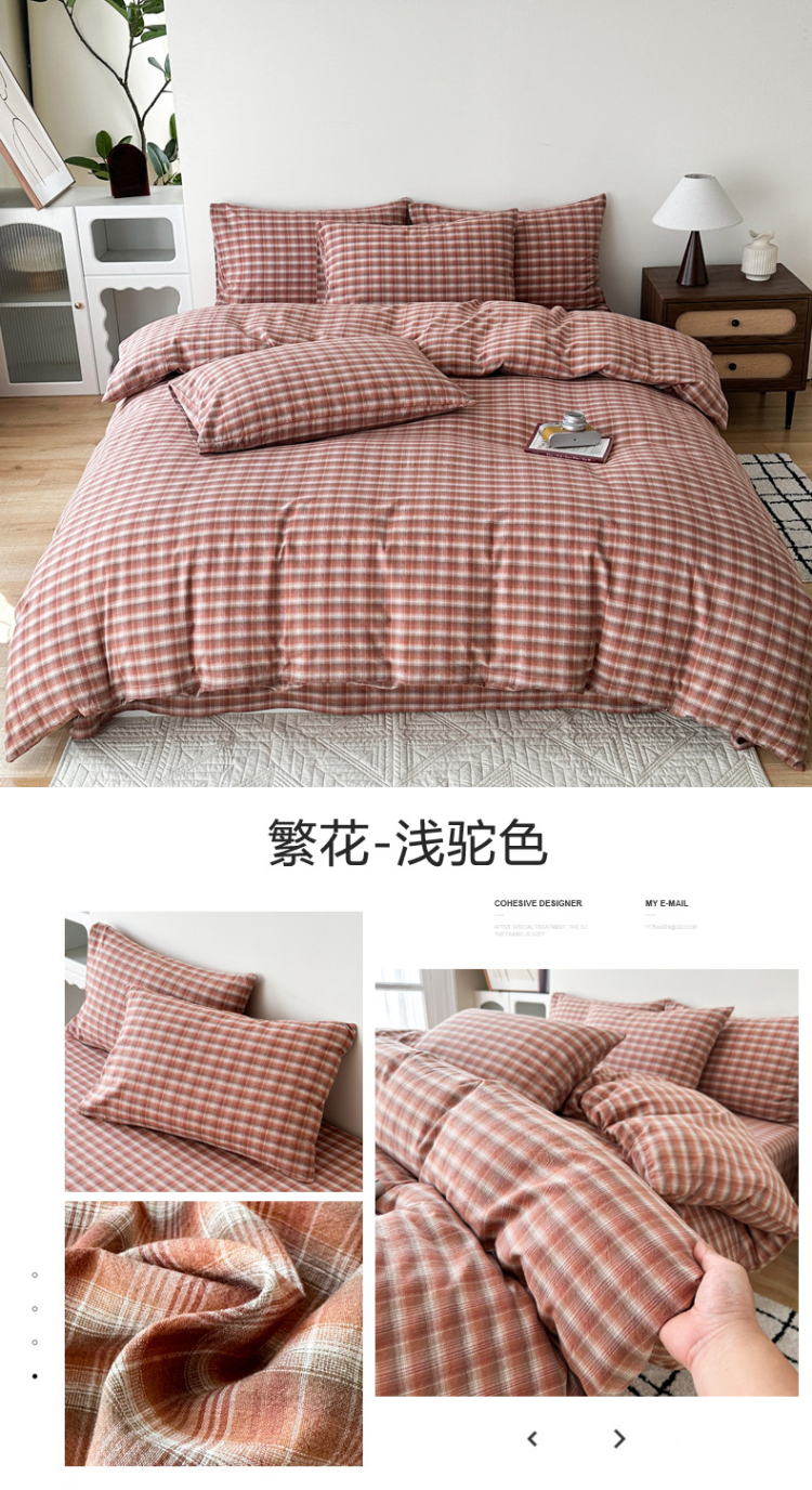 (总)蓝梦 2026新款全棉纯棉色织水洗棉简约四件套-繁花,繁花-浅驼色,繁花-粉,繁花-咖,繁花-绿