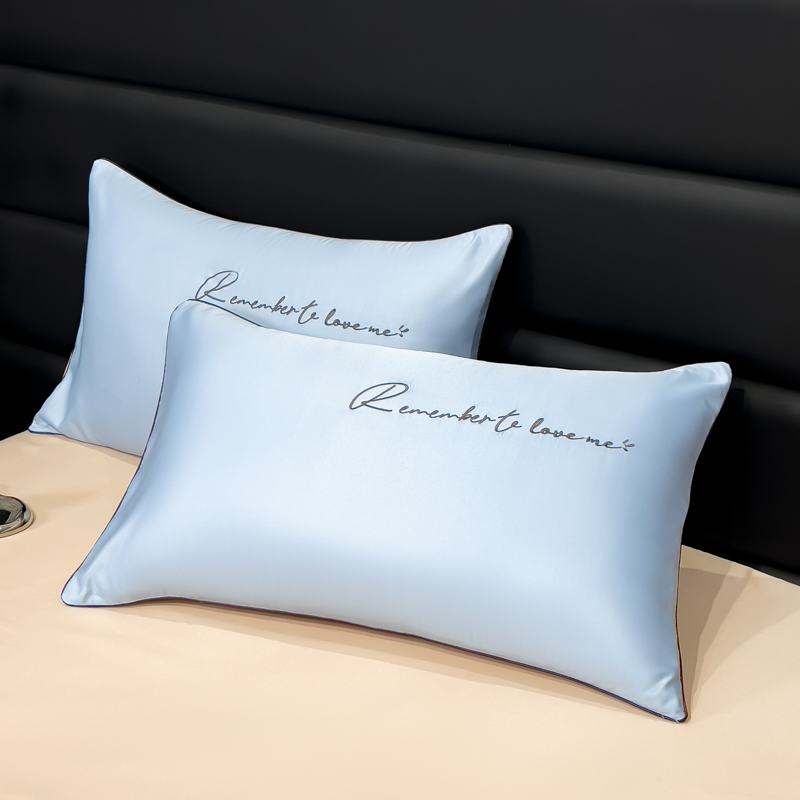 云恋家纺 2026新款冰丝刺绣单枕套枕套单件 一生所爱-宾利蓝