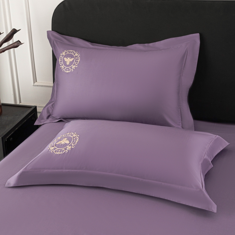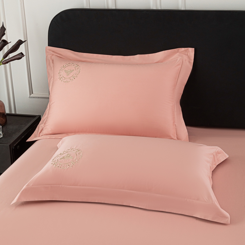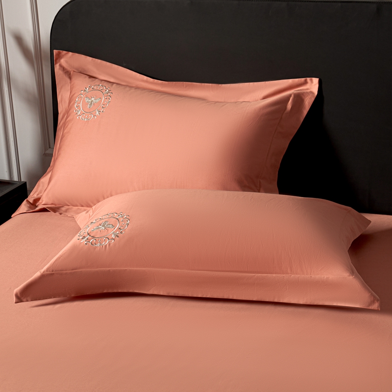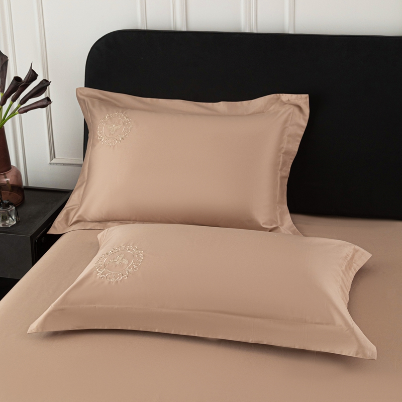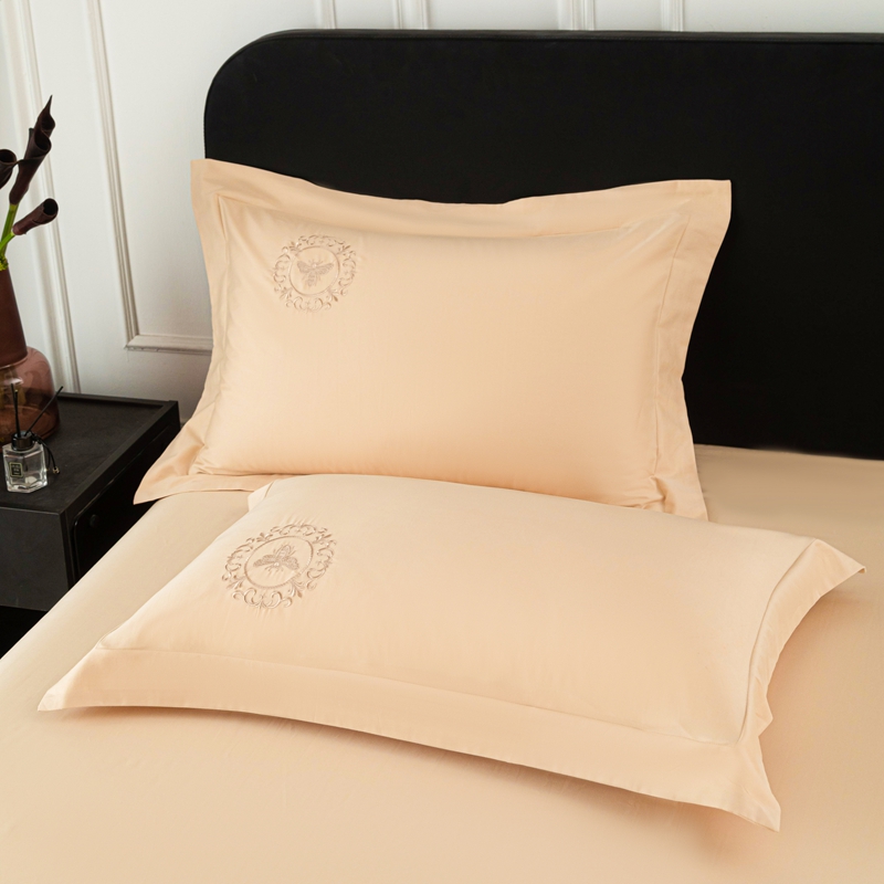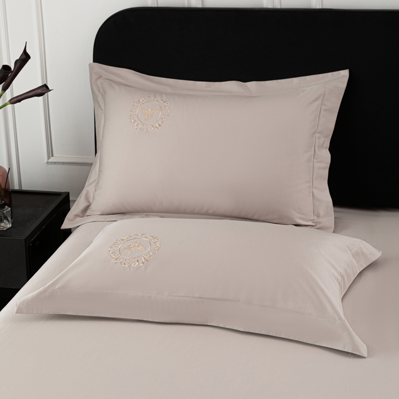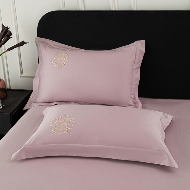 (总)莉迪娅 2026新款50s双股长绒棉简约纯色绣花枕套--小蜜蜂系列