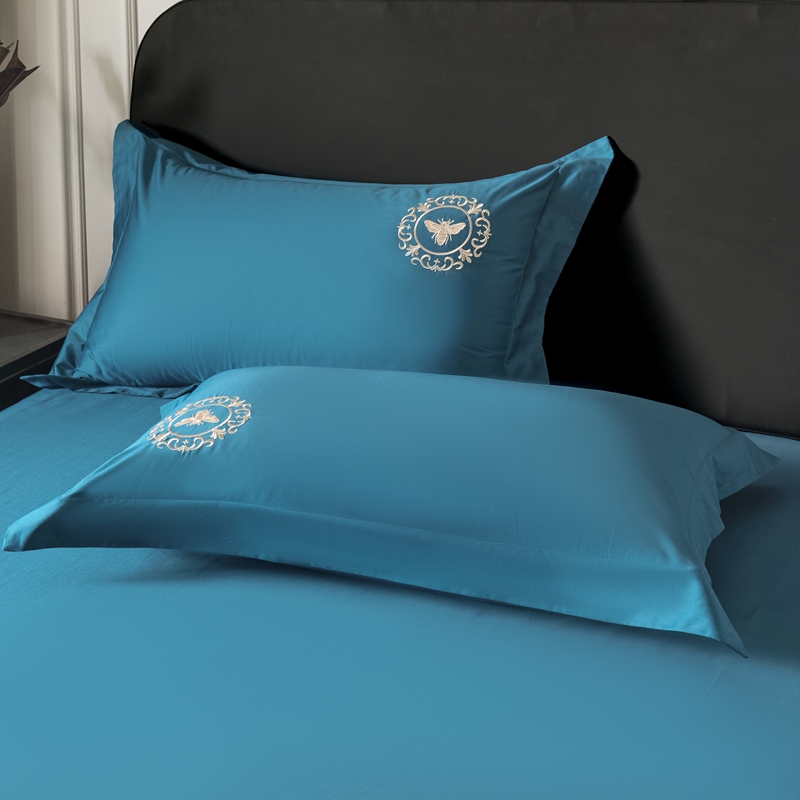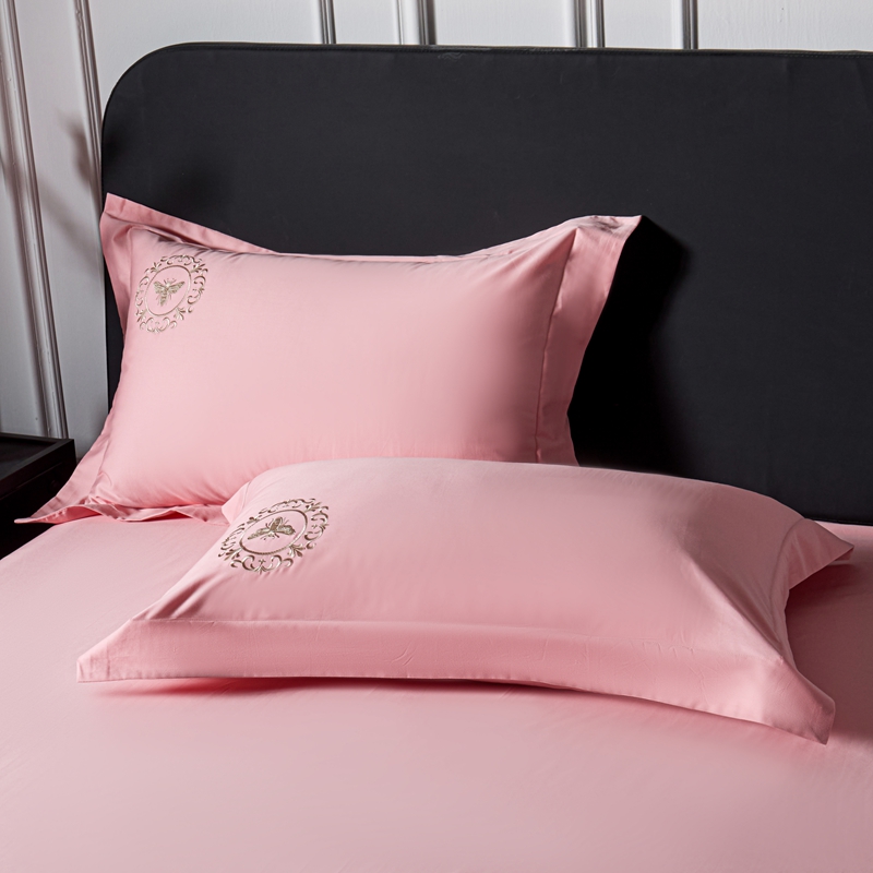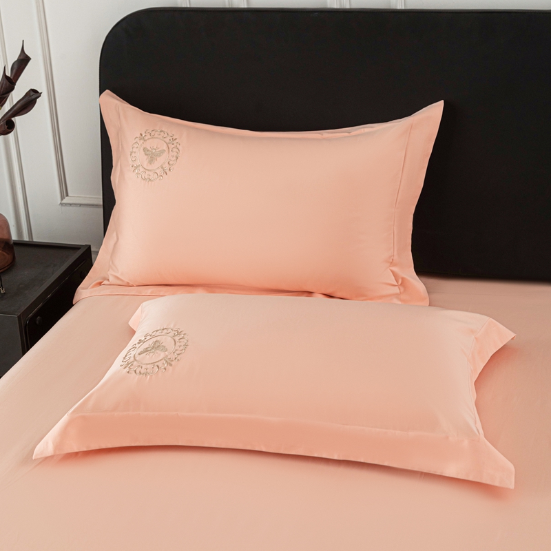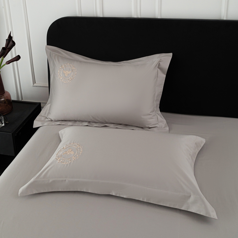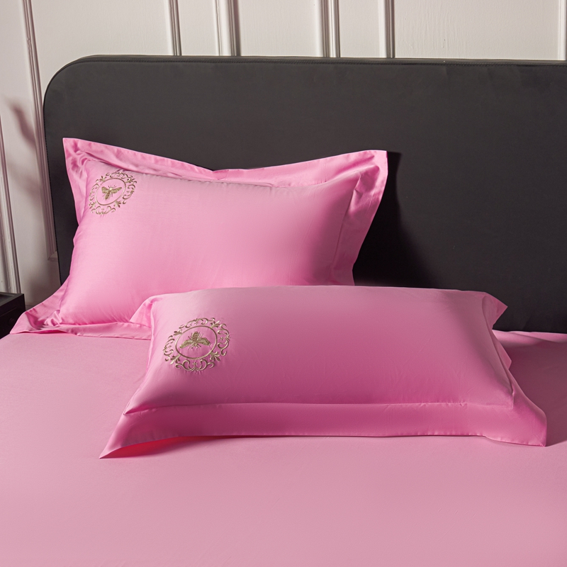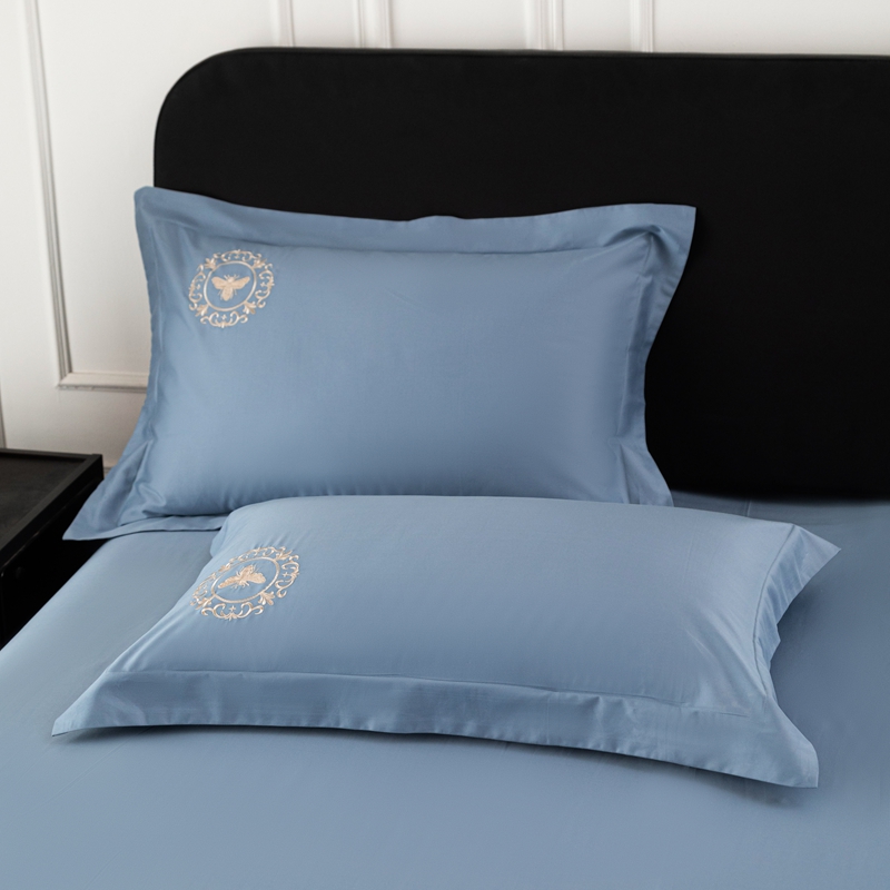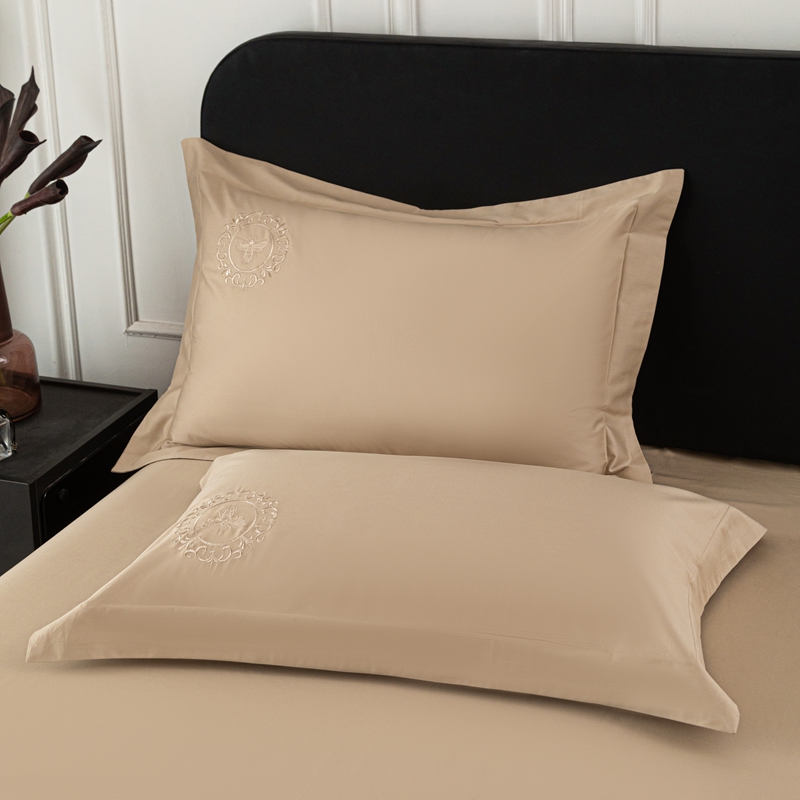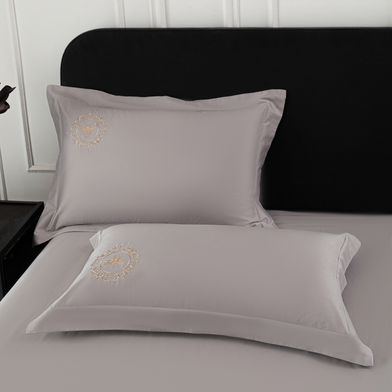 (总)莉迪娅 2026新款50s双股长绒棉简约纯色绣花枕套--小蜜蜂系列