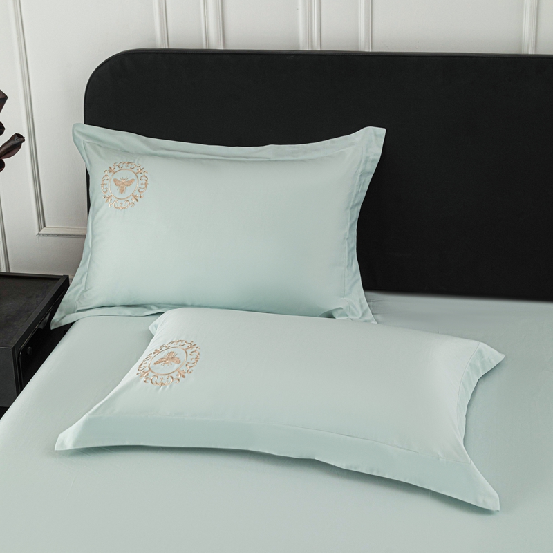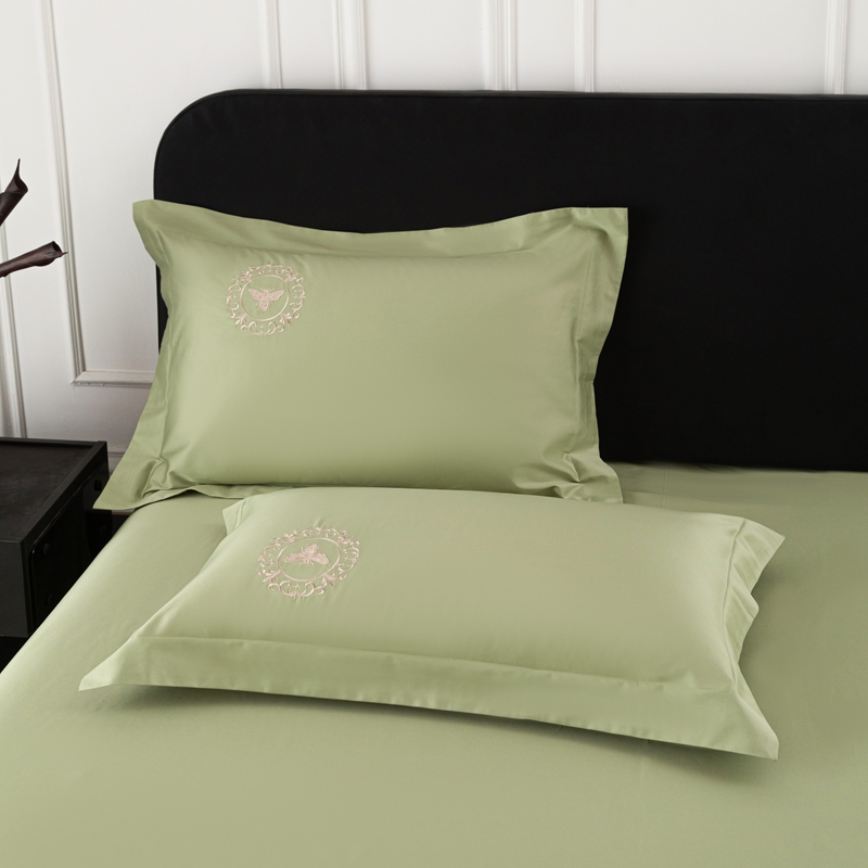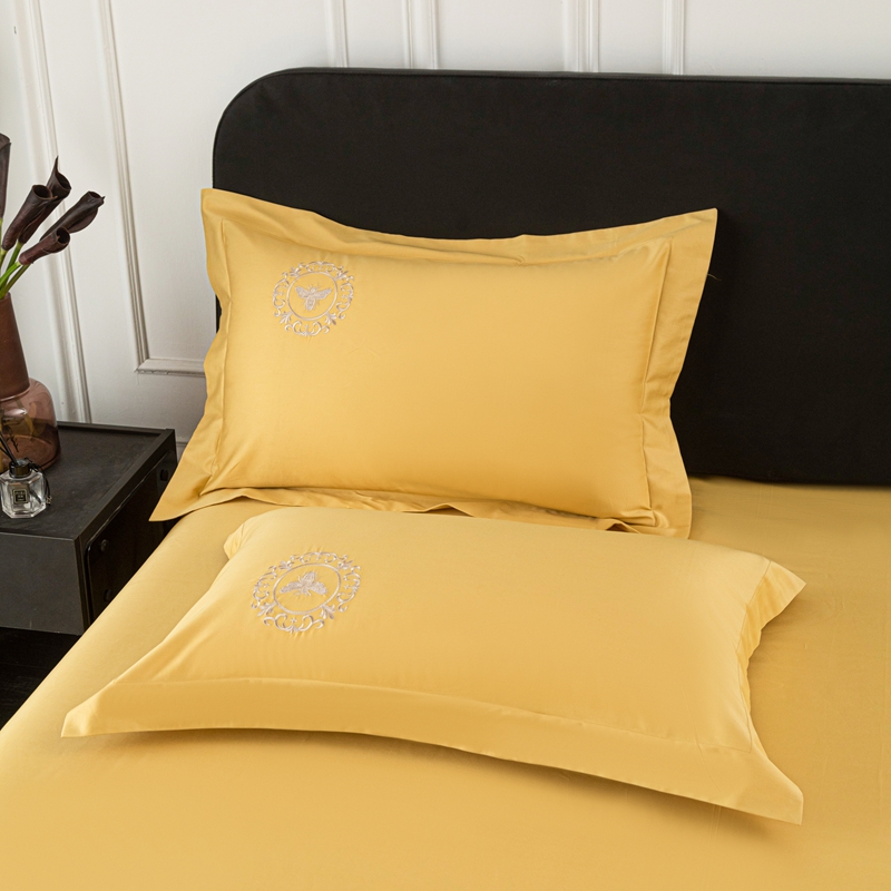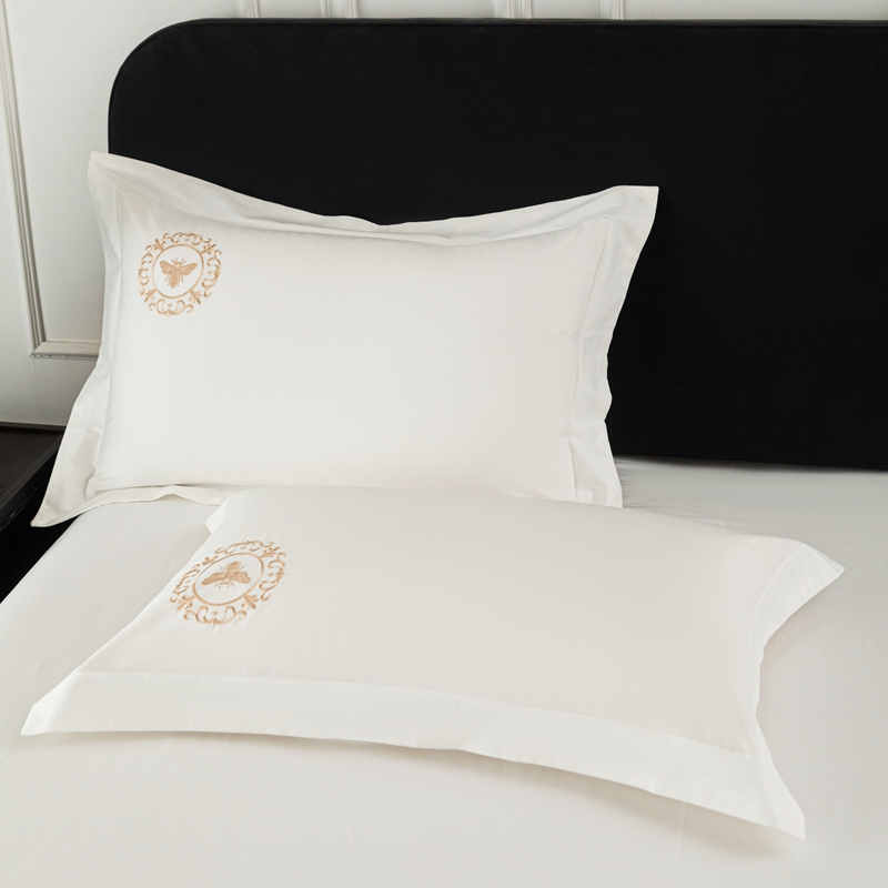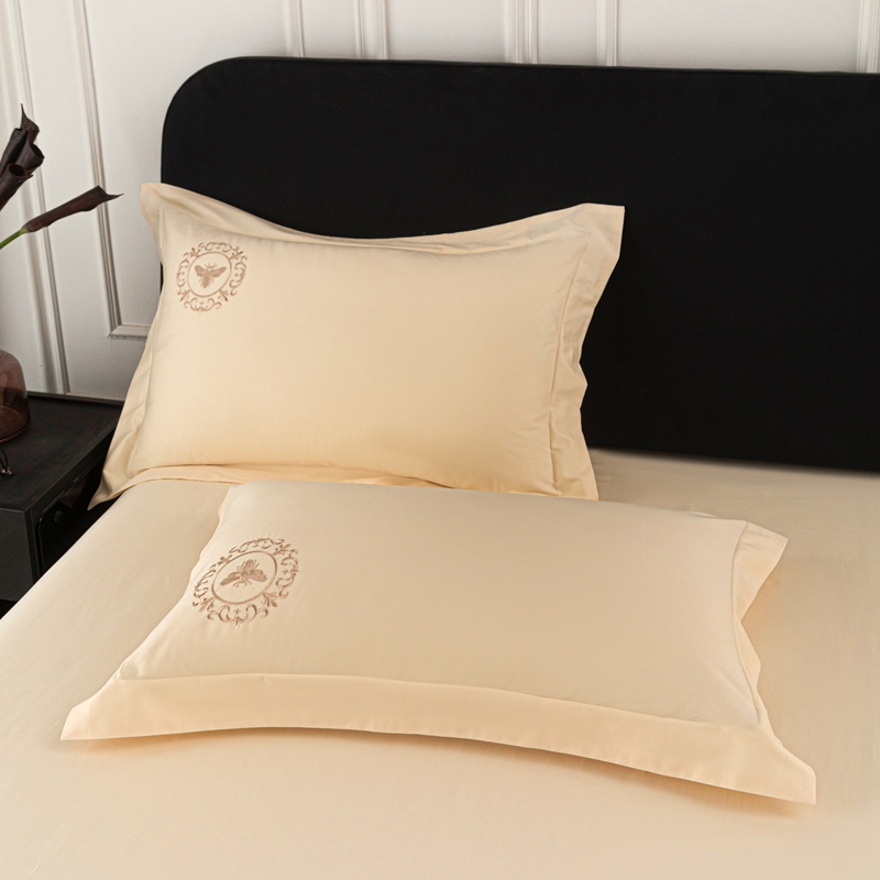 商品名称:(总)莉迪娅 2026新款50s双股长绒棉简约纯色绣花枕套--小蜜蜂系列