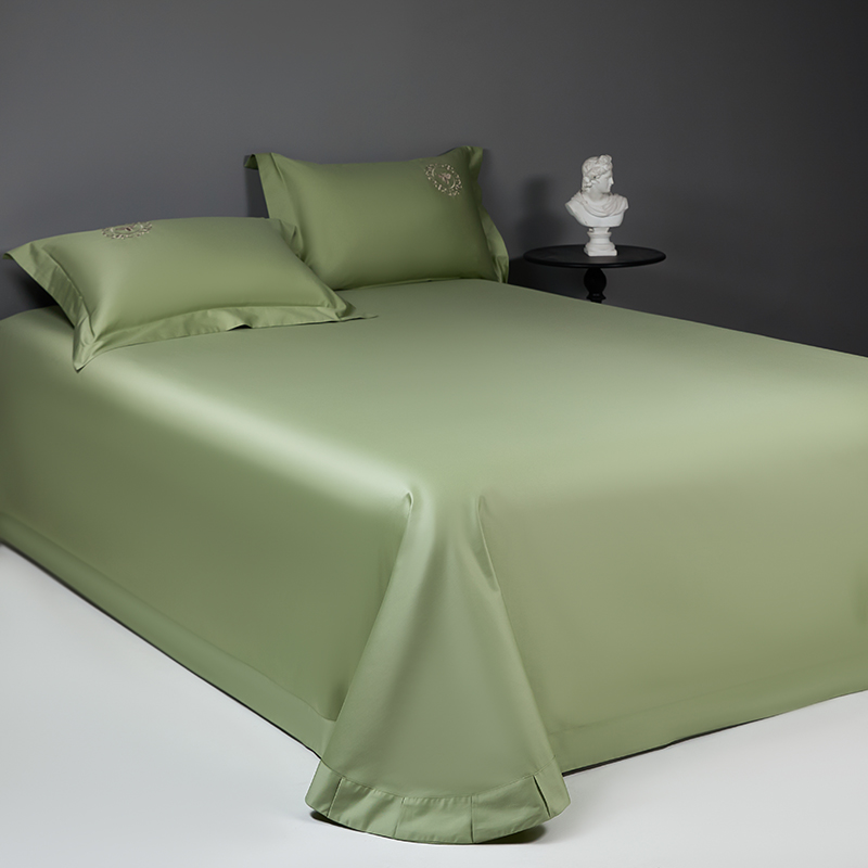 莉迪娅 2026新款50s双股长绒棉纯色简约绣花床单三件套--小蜜蜂系列 水云绿