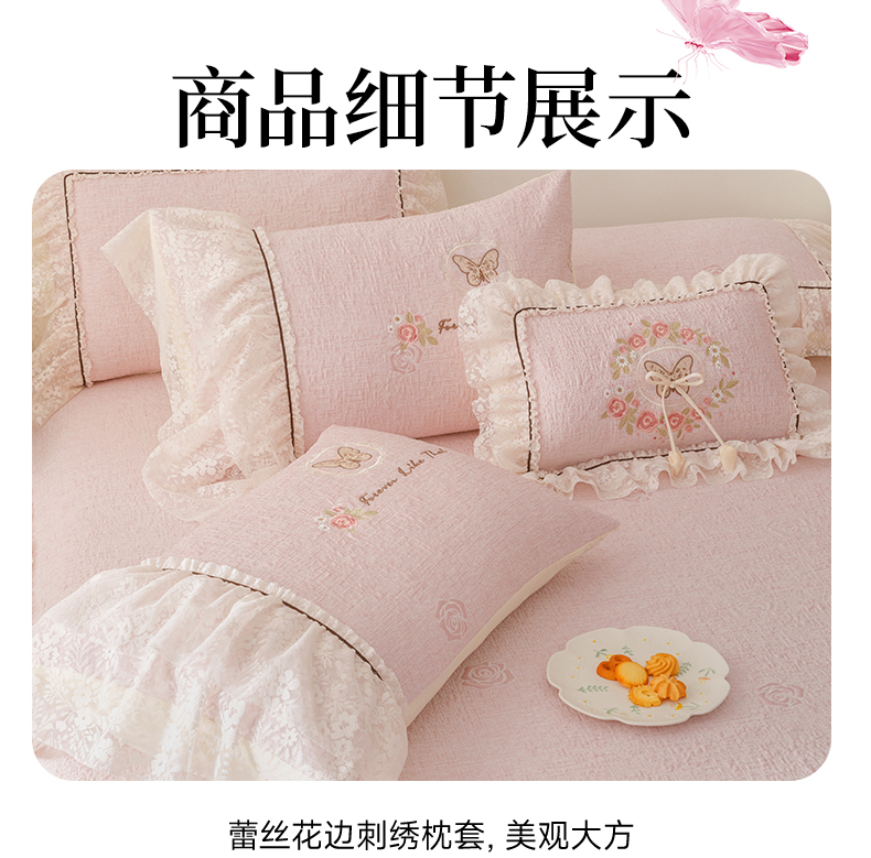 商品名称:好儿喜家纺 2026新款软凉席空调软席乙纶凉席床裙可机洗夏被夏凉被空调被四件套-漫夏系列 漫夏-浅粉