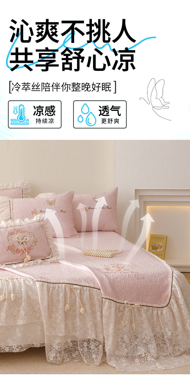 好儿喜家纺 2026新款软凉席空调软席乙纶凉席床裙可机洗夏被夏凉被空调被四件套-漫夏系列 漫夏-浅粉