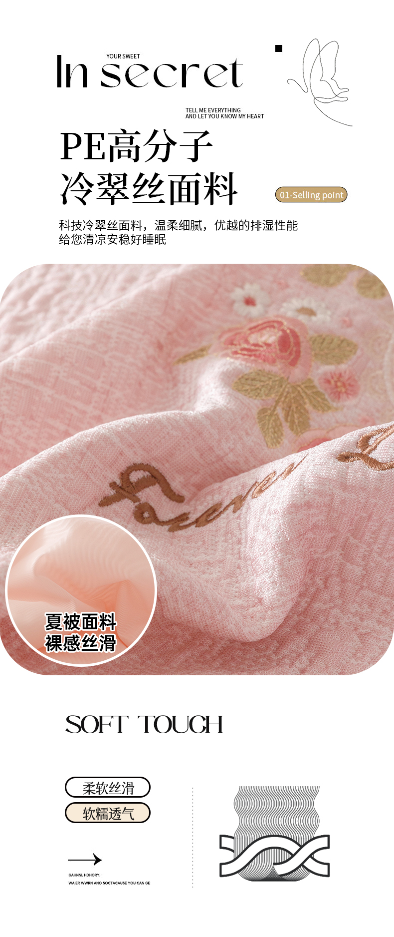 被子 > 夏被 > 好儿喜家纺 2026新款软凉席空调软席乙纶凉席床裙可机洗夏被夏凉被空调被四件套-漫夏系列 漫夏-浅粉