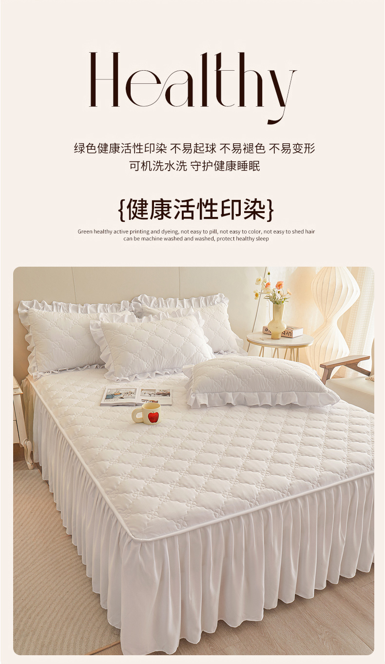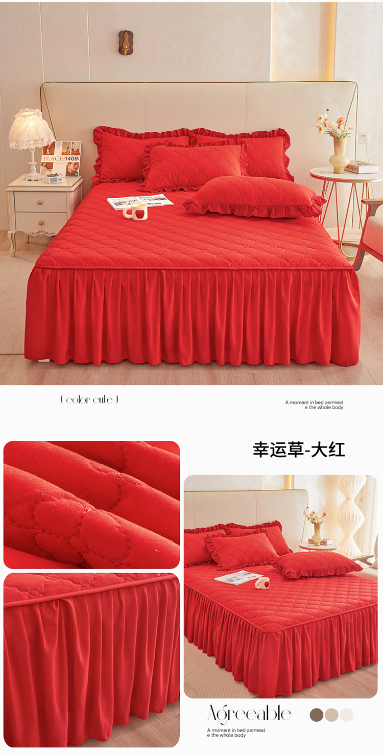 (总)源梦家纺 2024新款幸运草夹棉单床裙,纯白,大红,豆沙,粉色,灰色,兰色,米黄,玉色