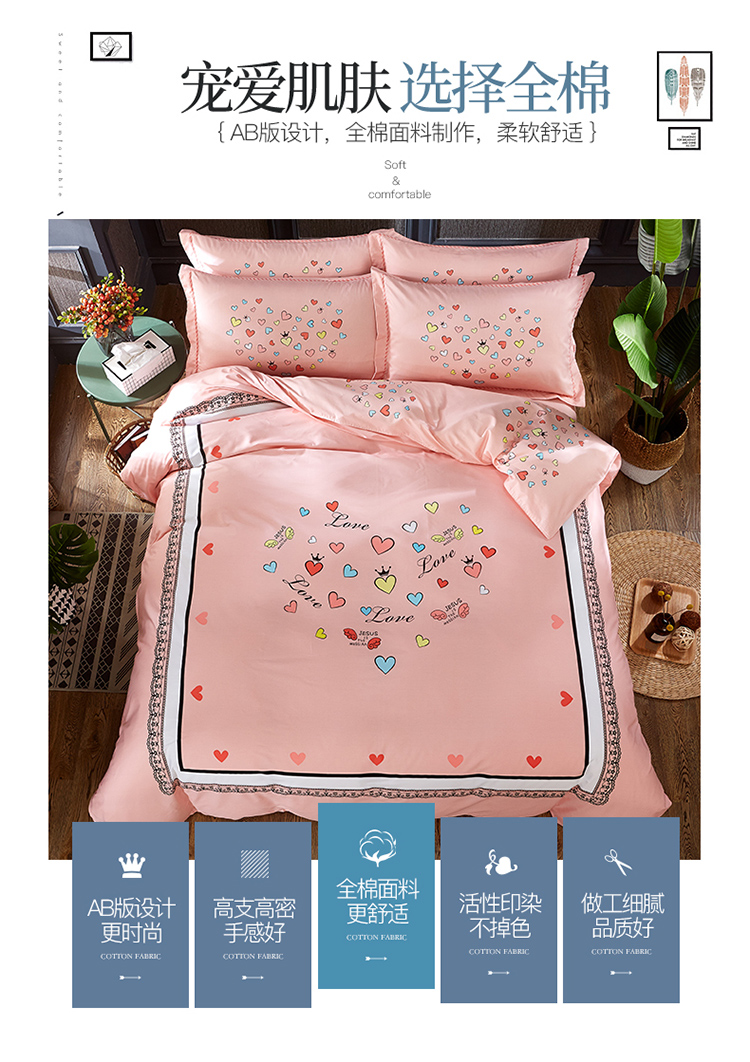商品名称:雲归梦 活性大版全棉四件套床单款 恋恋不舍