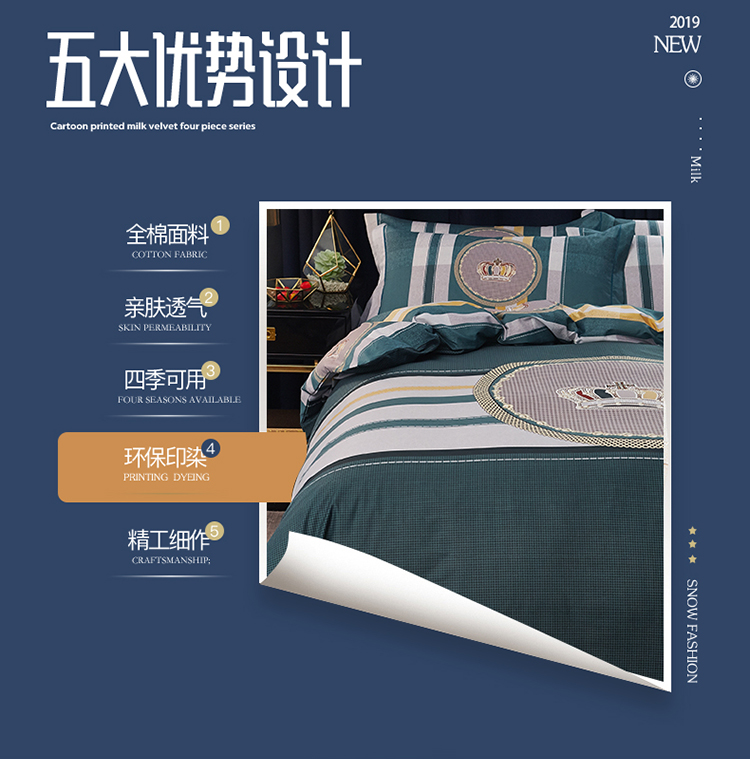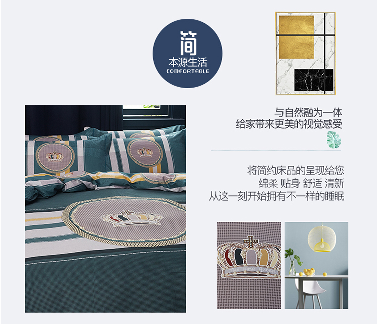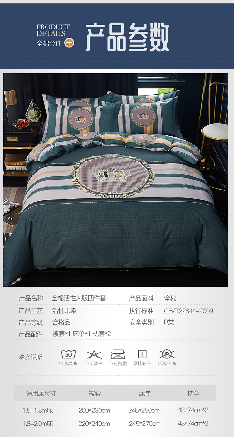 商品名称:雲归梦 2019全棉活性大版简约卡通风格四件套 皇冠