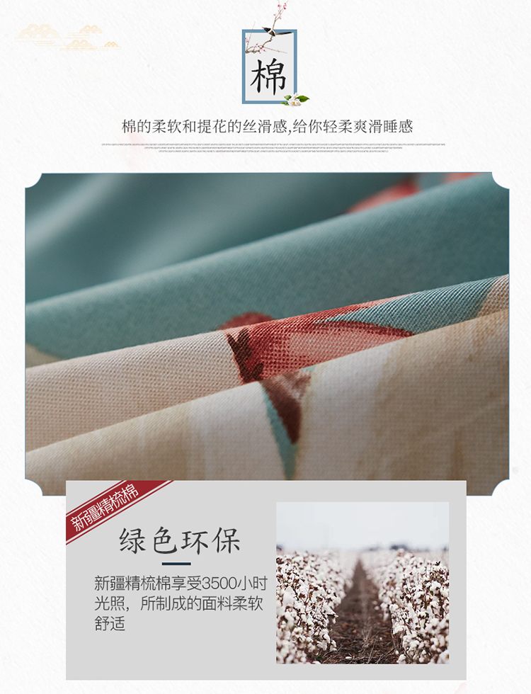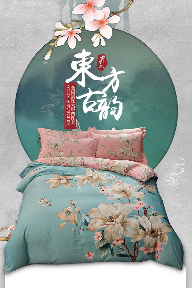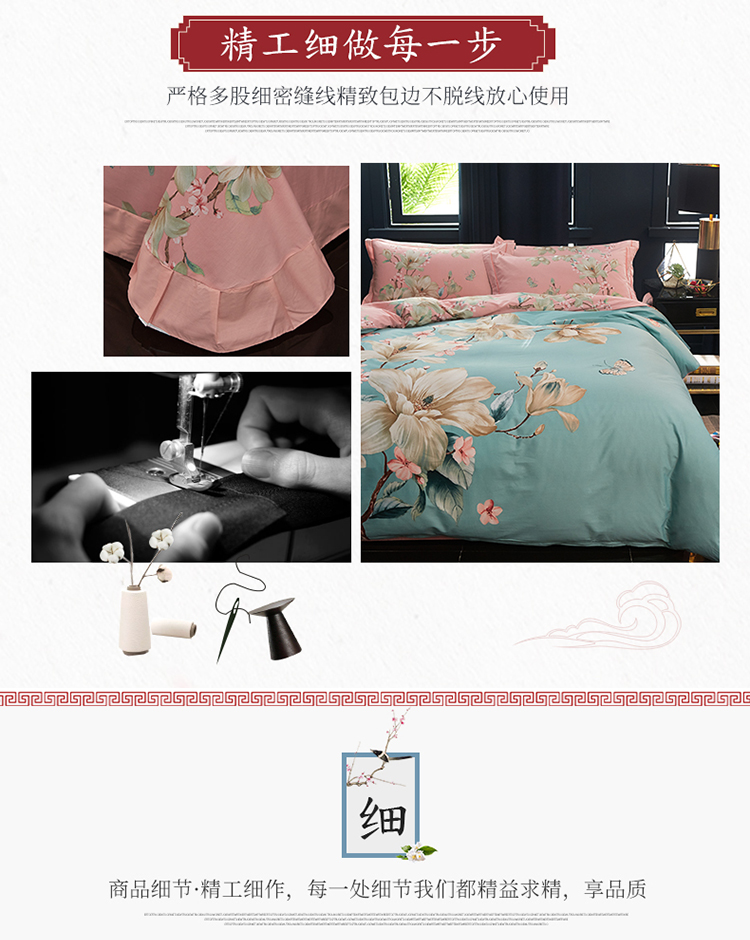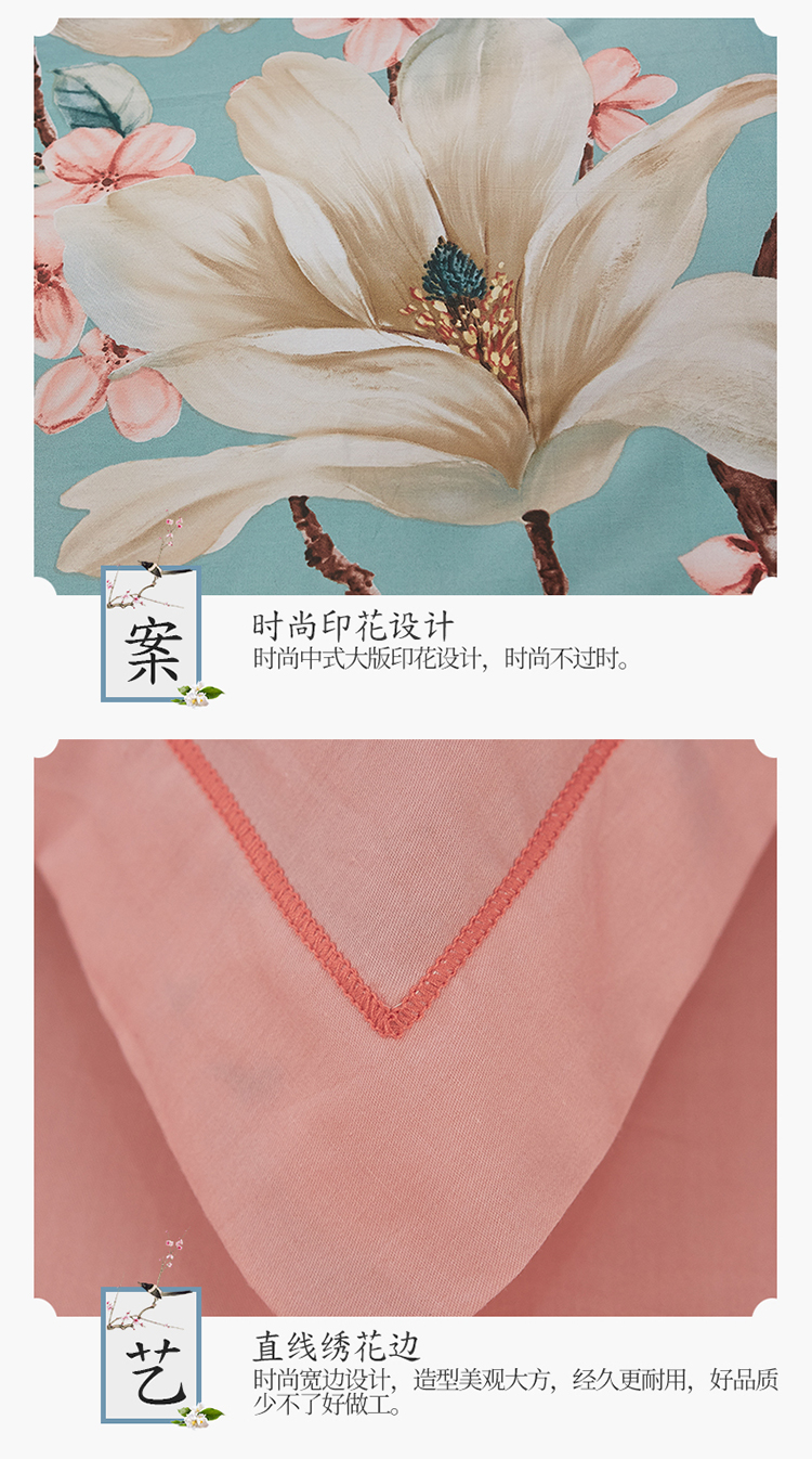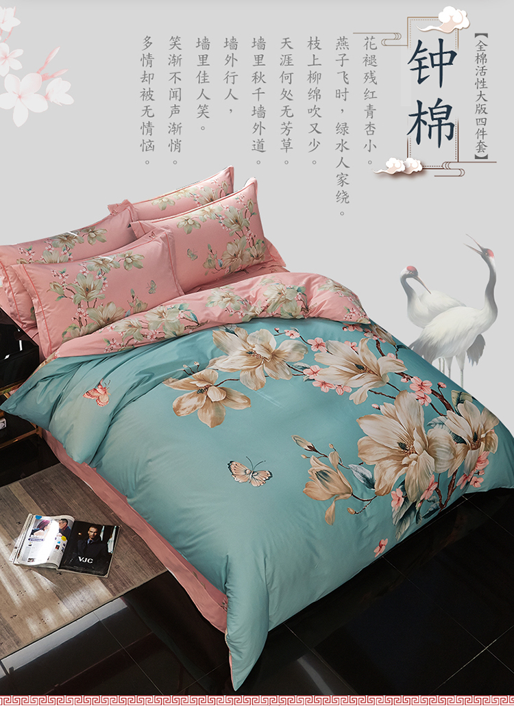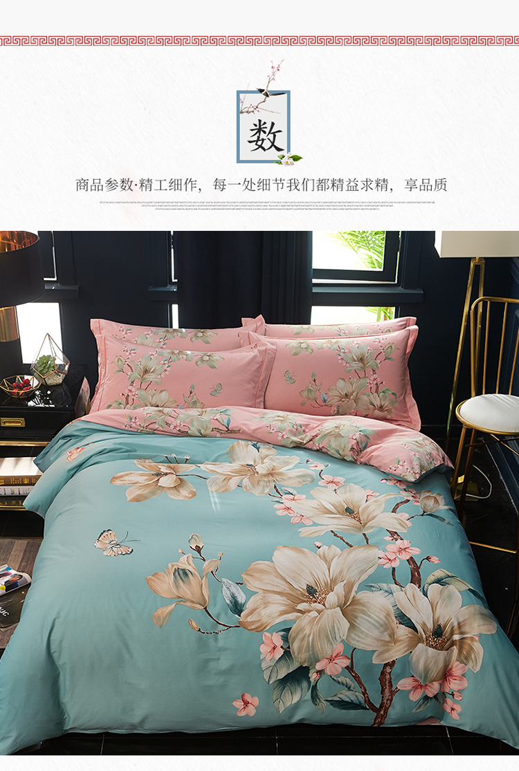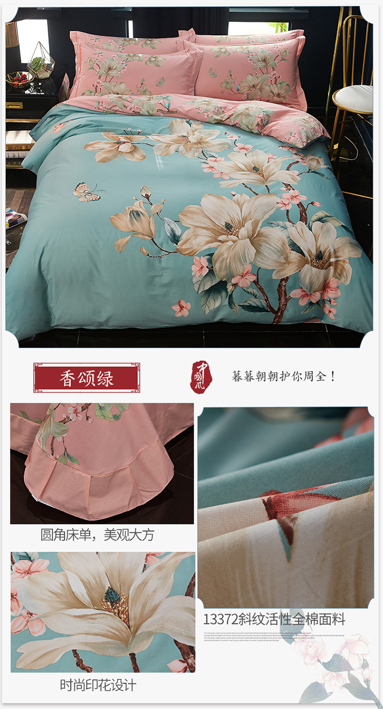 商品名称:雲归梦 2019全棉活性大版中国风花卉四件套 香颂绿
