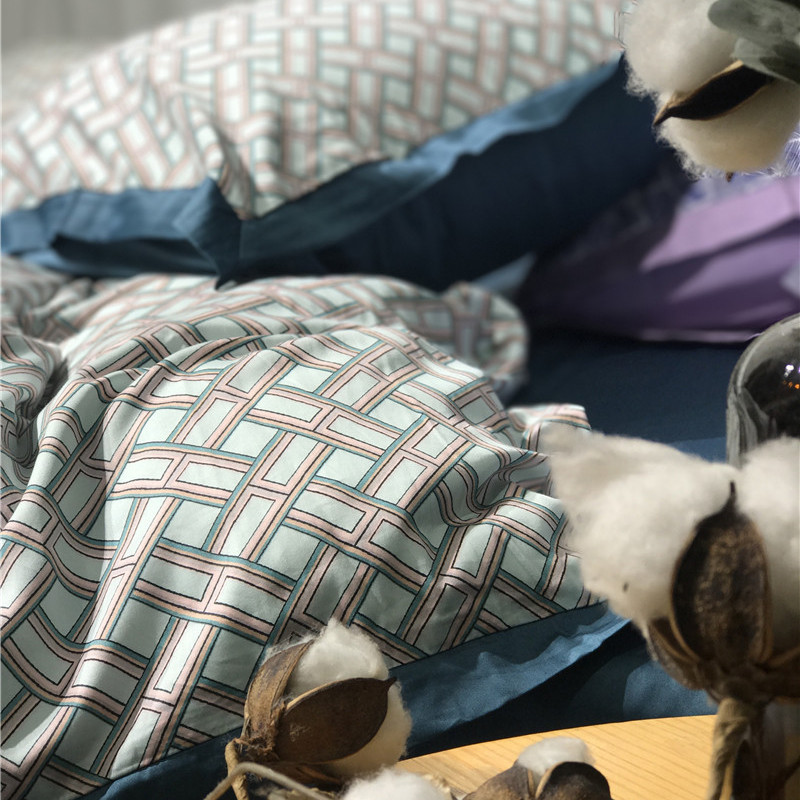 (总)优然居2020新款100支婴儿暖绒棉轻奢风刺绣四件套,大地黄加藏青,复古咖青,轻奢粉灰,霜绿大地色,霜绿复古色