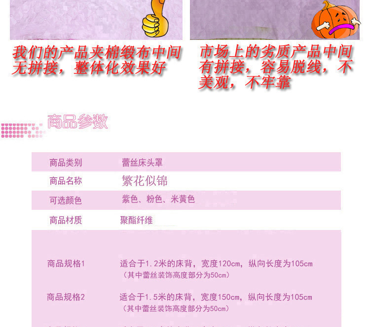 商品名称:(总)情恒家纺 2019蕾丝床头罩大靠背靠垫繁花似锦系列