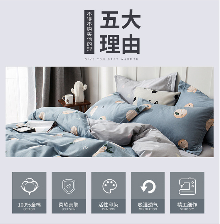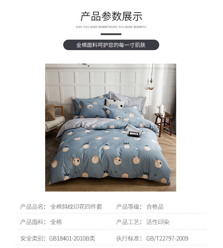 商品名称:芃成 2020洛卡全棉12868四件套 幸福回味蓝
