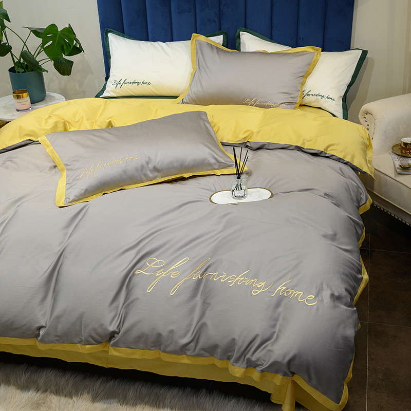 商品名称:太古汇 60支贡缎长绒棉纯色双拼四件套实拍图 蒂度灰