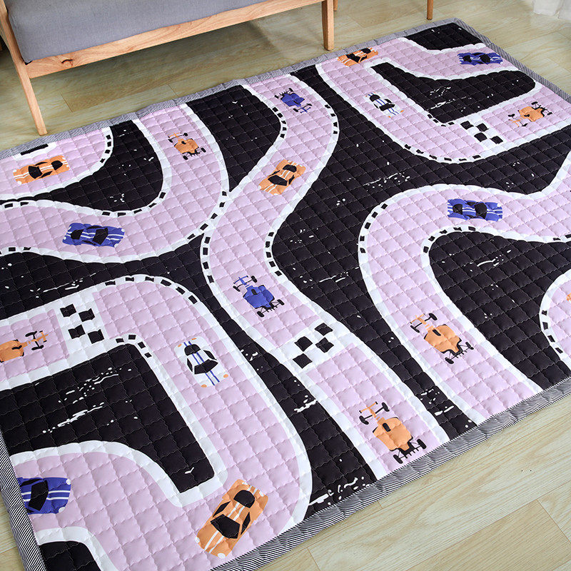 沁童家纺 北欧风长方形加厚地垫儿童爬爬垫高速公路紫