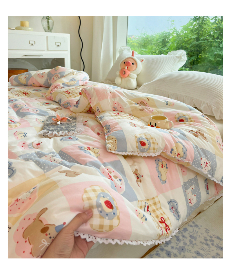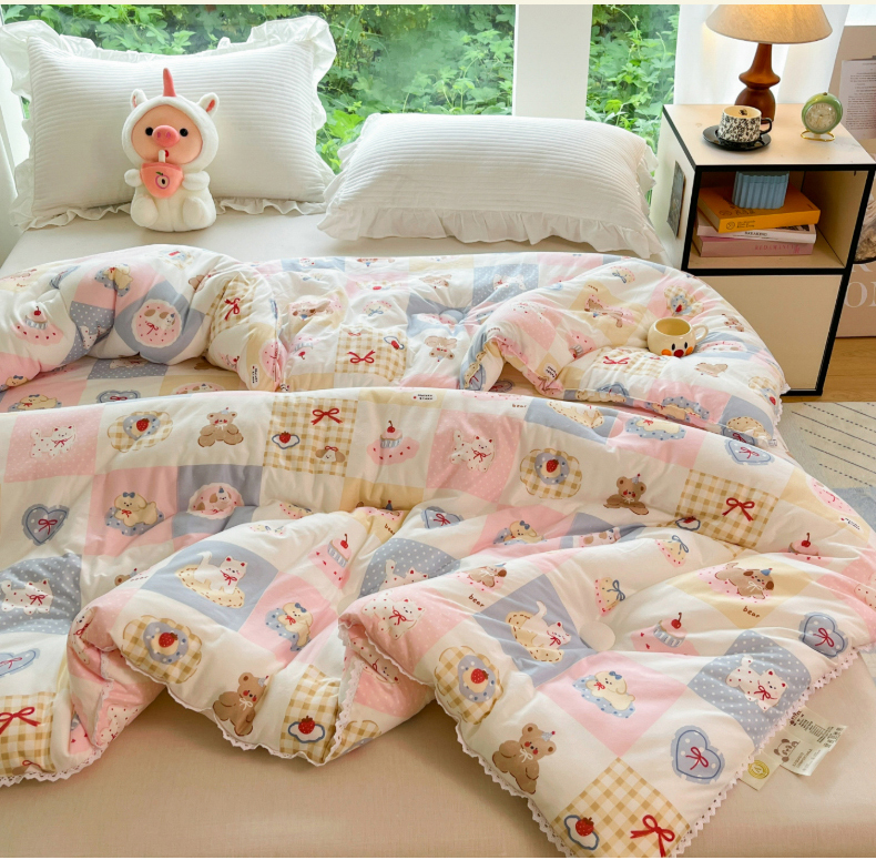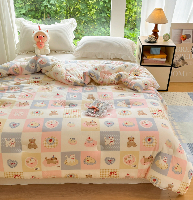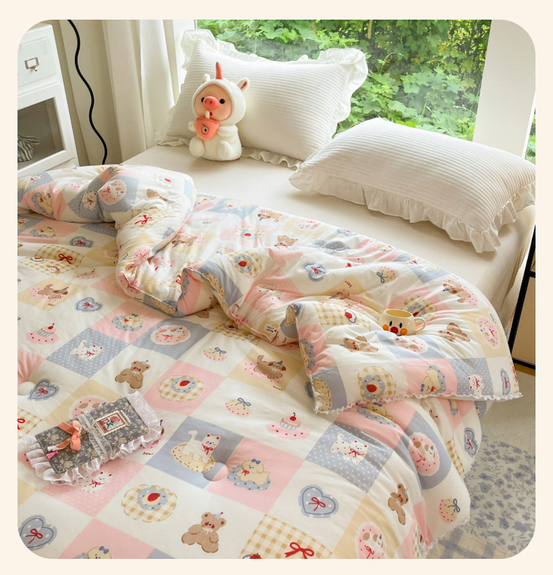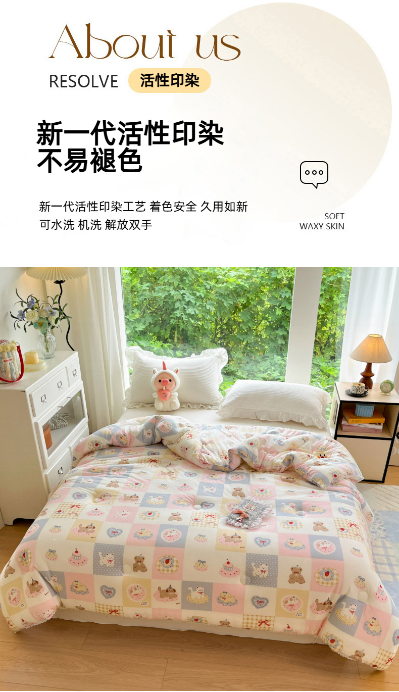 (总)大彩家居 2025新款水洗皱皱纱大豆被春秋被冬被被子被芯,缤纷世界,花丛小兔,小狗乐园,蓝小兔,花海,粉小兔