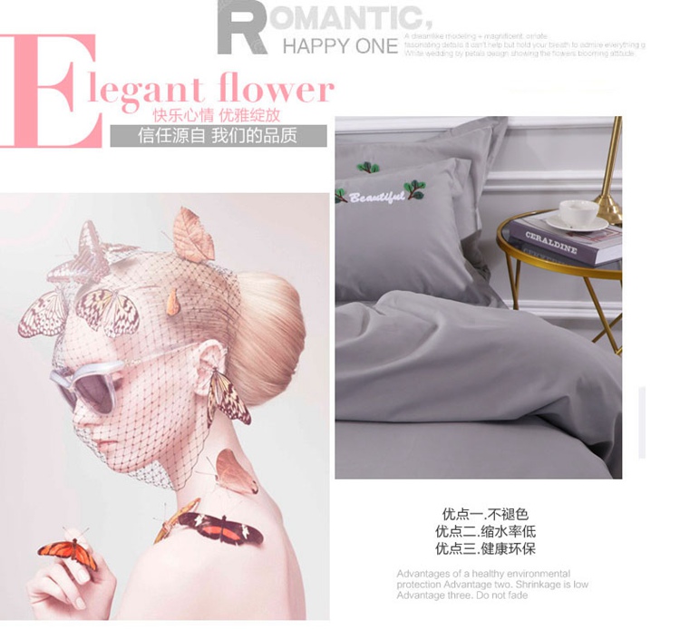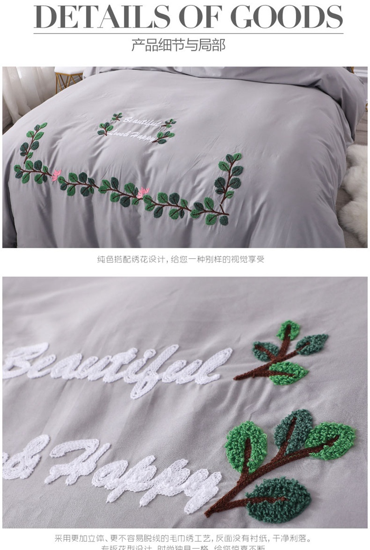 商品名称:13372田园风全棉毛巾绣四件套纯棉绣花全棉刺绣爱之蔓灰色