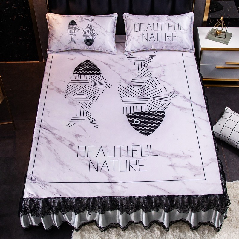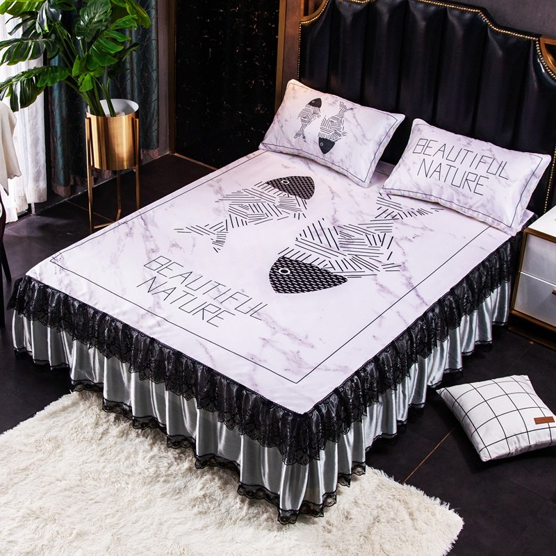 纽缦 2020新款冰丝大版床裙三件套 一对鱼