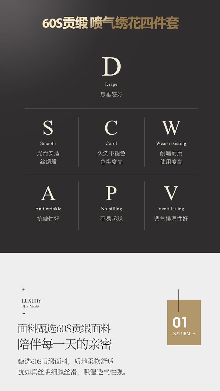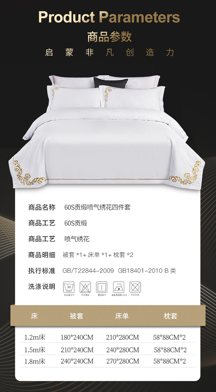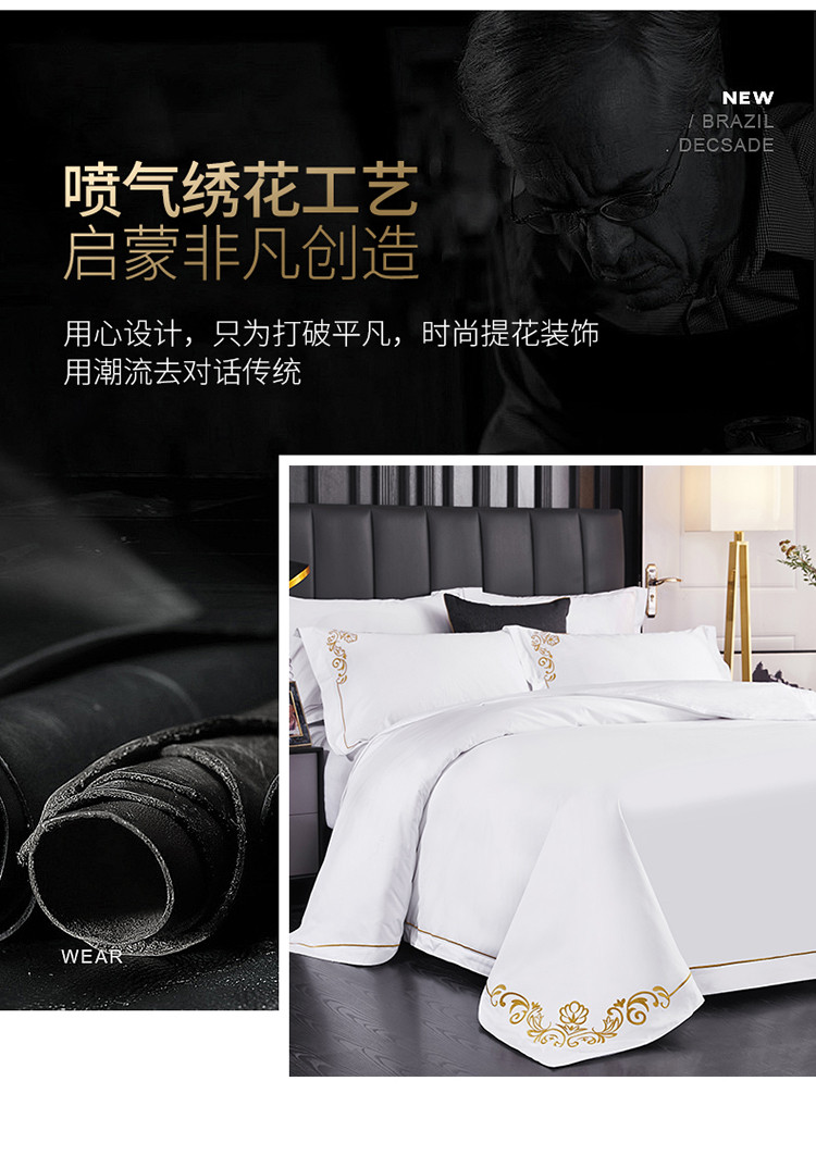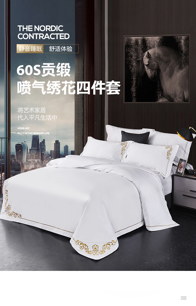 (总全棉 60s贡缎喷气绣花套件酒店四件套 宾馆套件民宿用品,典雅,浪漫,时尚