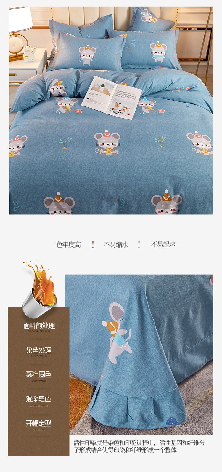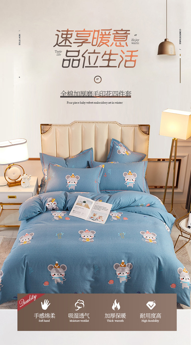 当前位置: 91家纺网 > 商品网购 > 床品套件 > 四件套 > 全棉普通四件套 > 雲归梦 2020新款全棉加厚磨毛四件套 鼠鼠生威-蓝