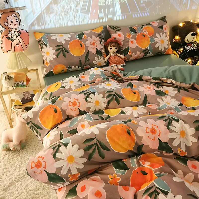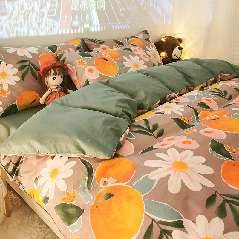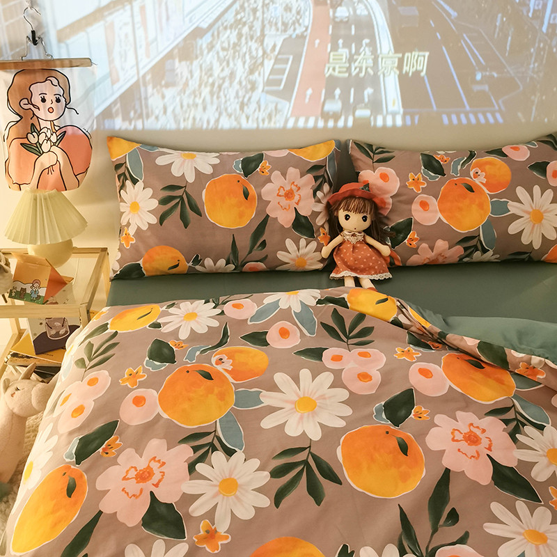 HL原创新款13372全棉四件套夜晚网红风实拍图 橙意