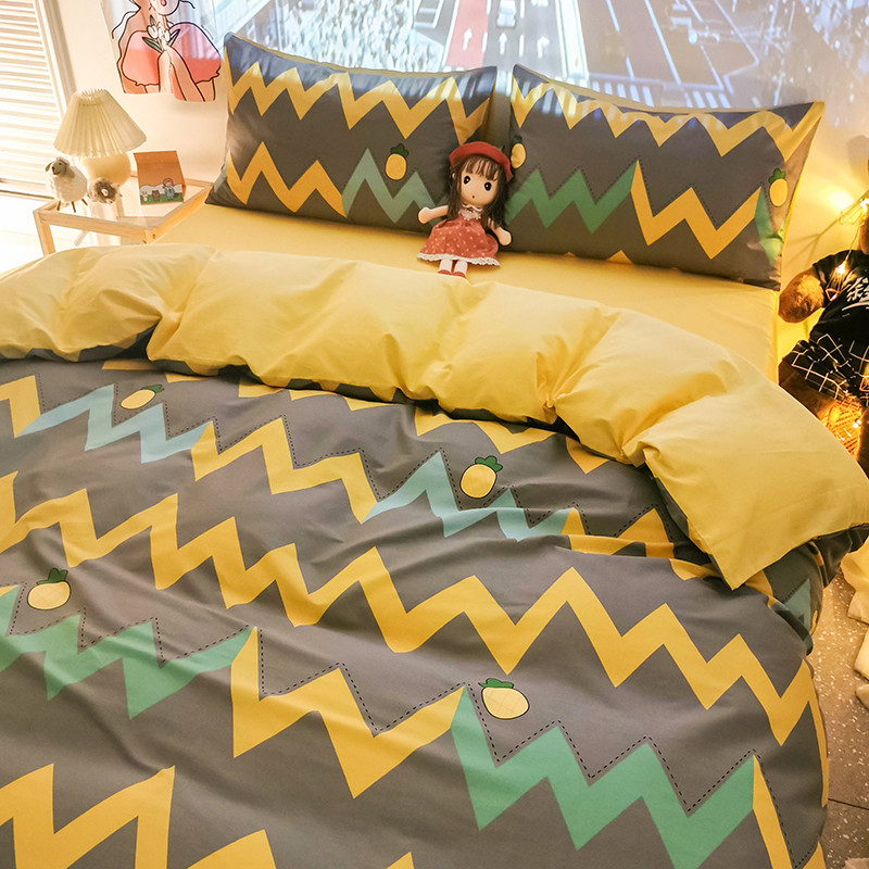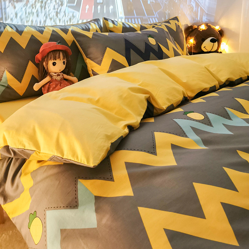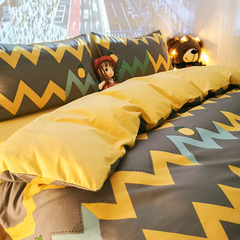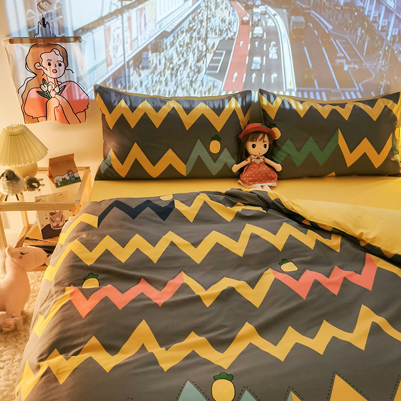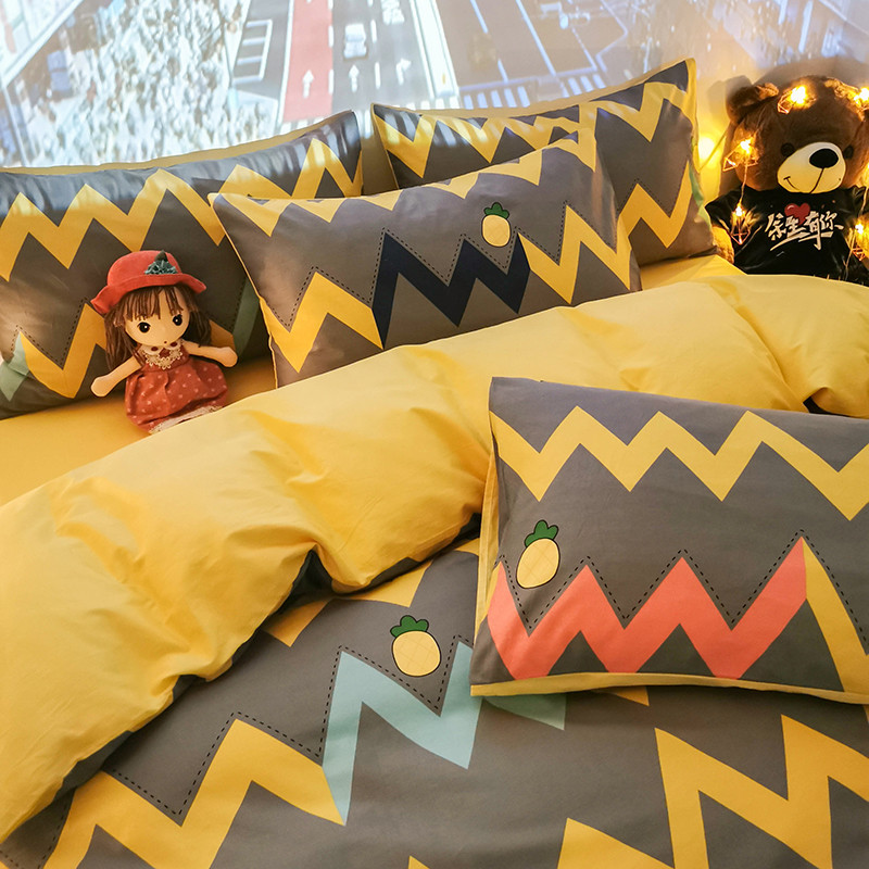 商品名称:HL原创新款13372全棉四件套夜晚网红风实拍图 甜格菠萝
