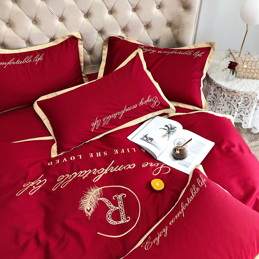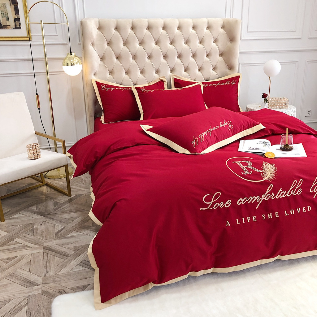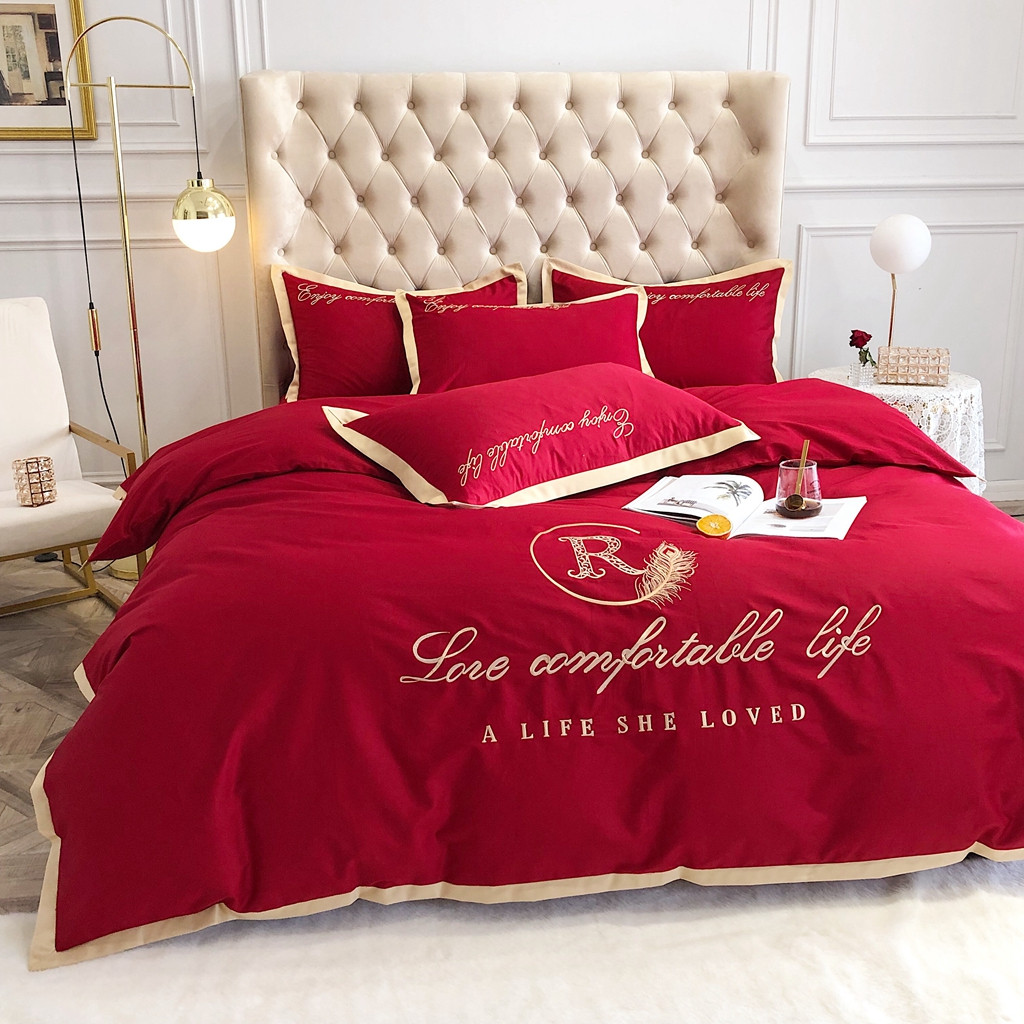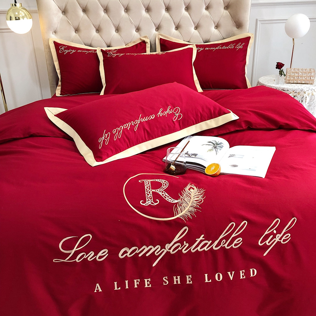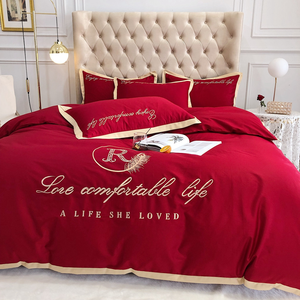 馨蕊家居 2021秋冬新品60s长绒棉简爱四件套简爱-温莎红
