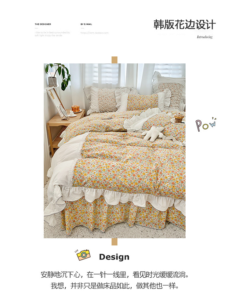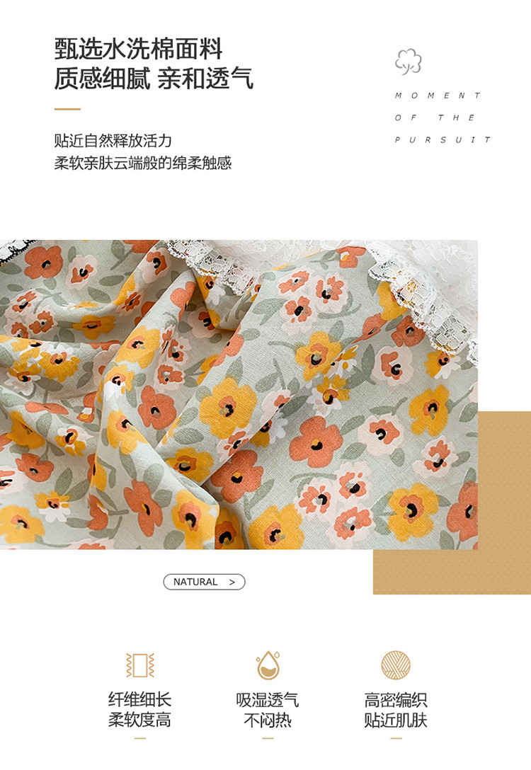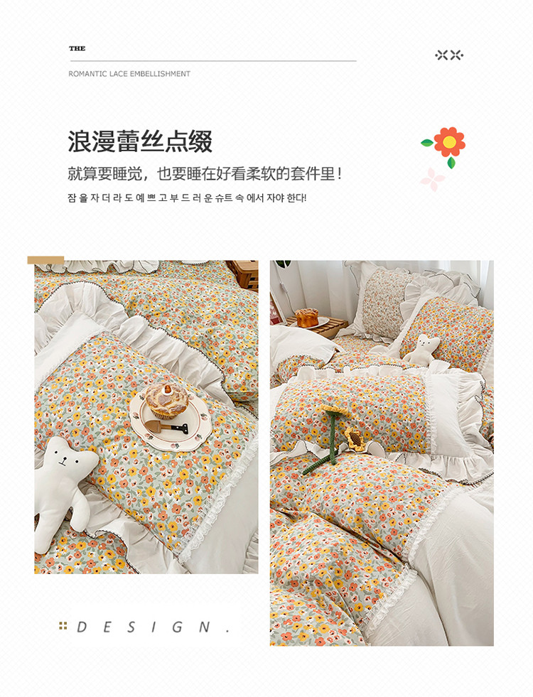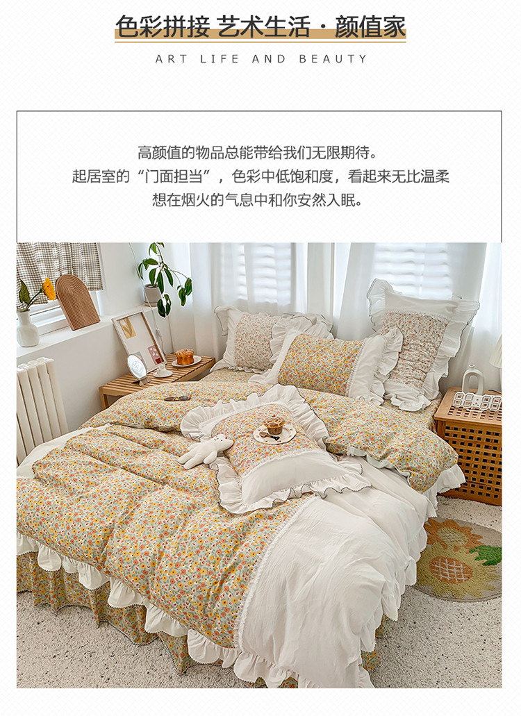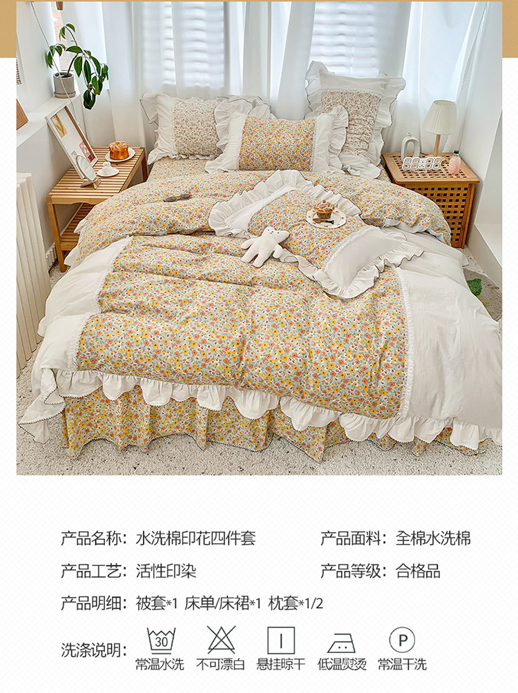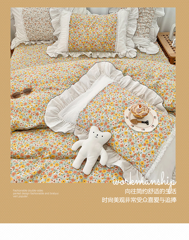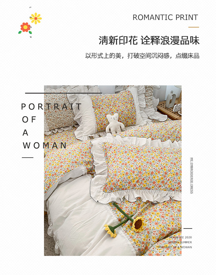 当前位置: 91家纺网 > 商品网购 > 床品套件 > 四件套 > 水洗棉四件套 > 婳庭 2020新款小碎花蕾丝边水洗棉印花四件套 晨夕