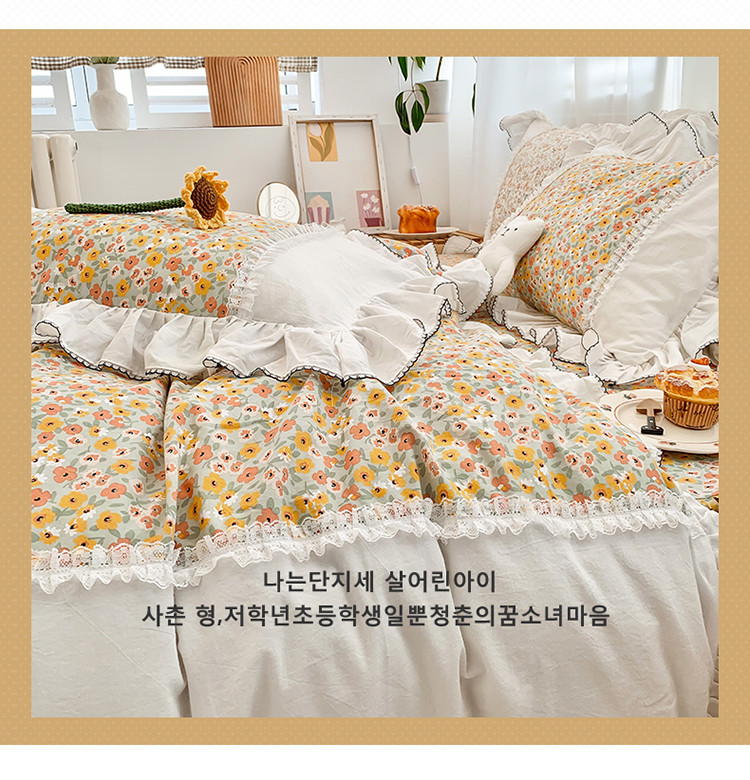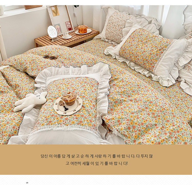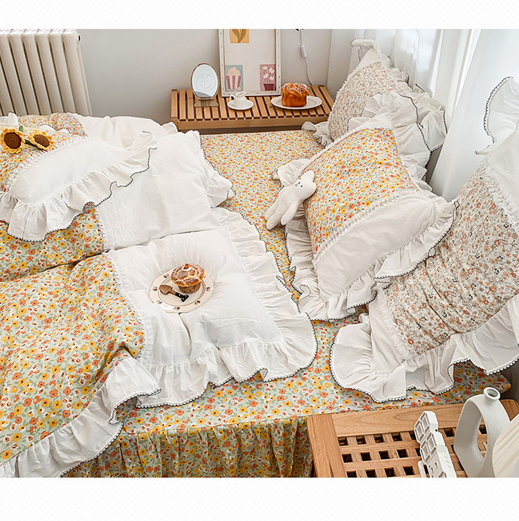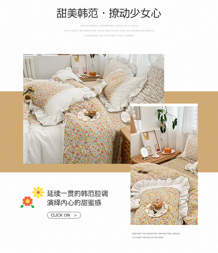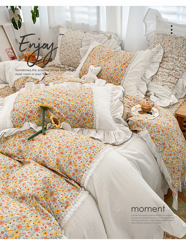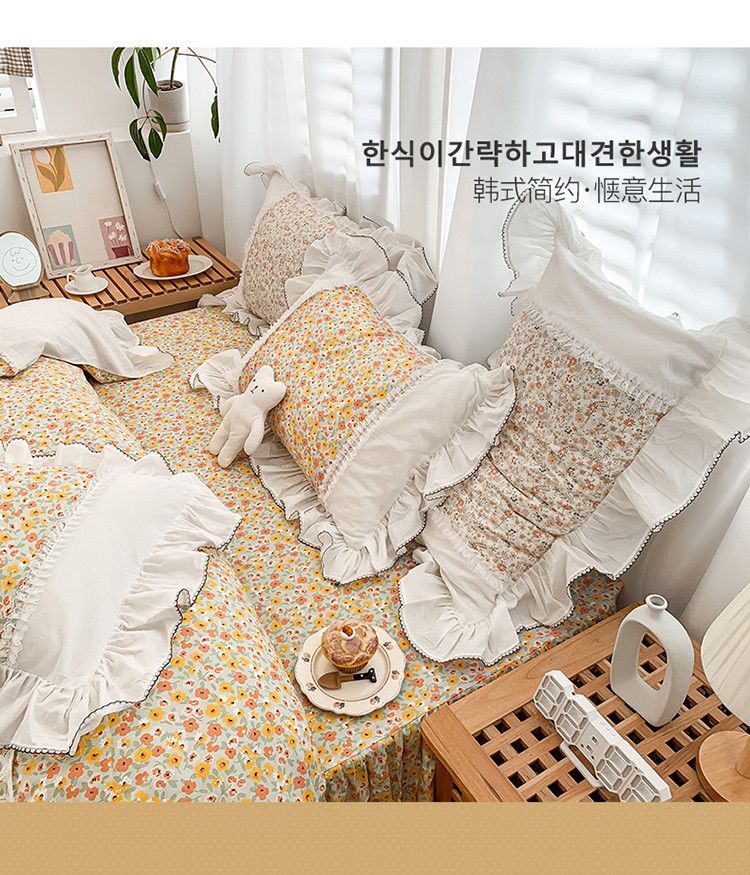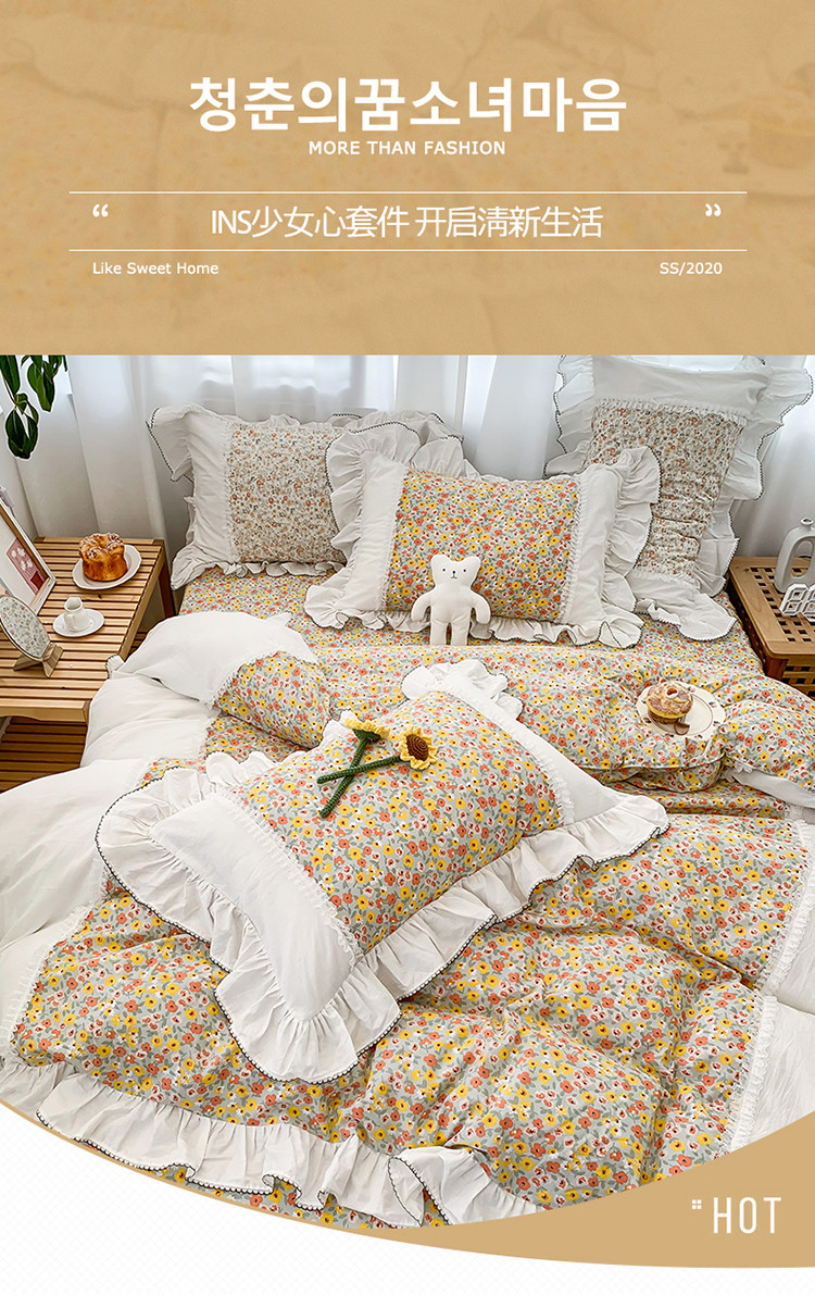 当前位置: 91家纺网 > 商品网购 > 床品套件 > 四件套 > 水洗棉四件套 > 婳庭 2020新款小碎花蕾丝边水洗棉印花四件套 晨夕