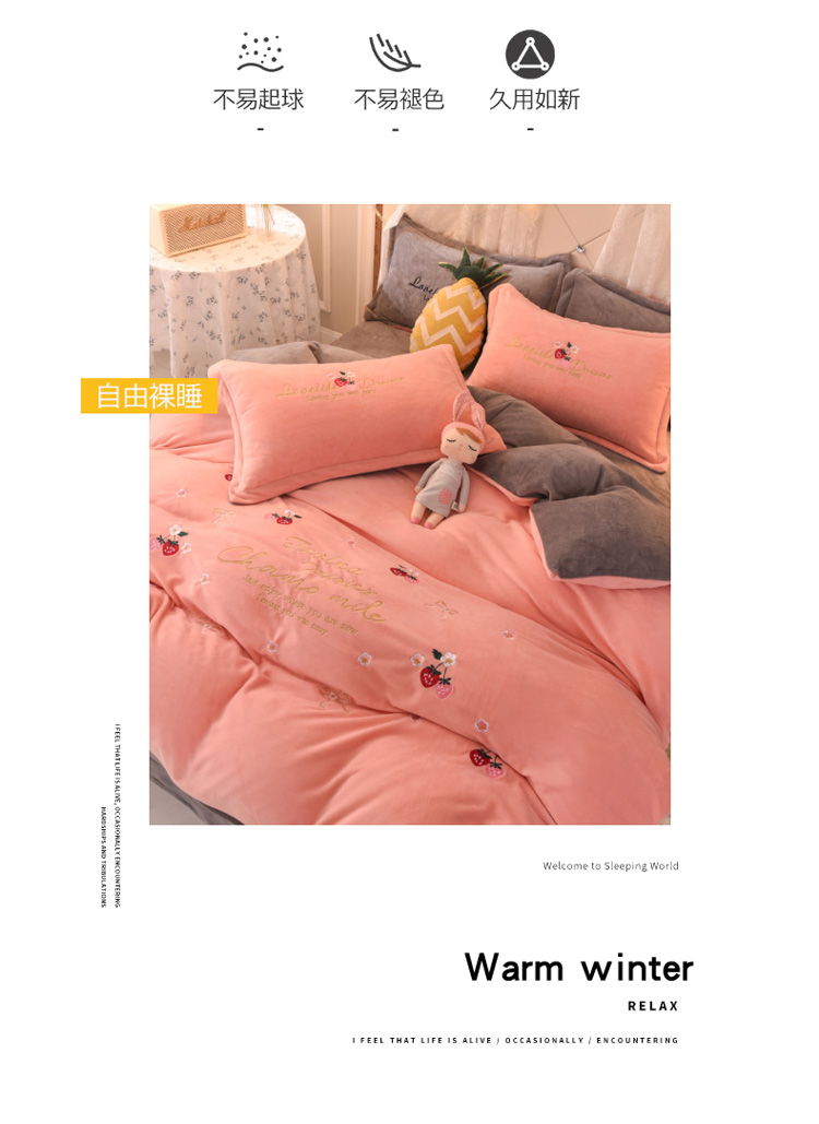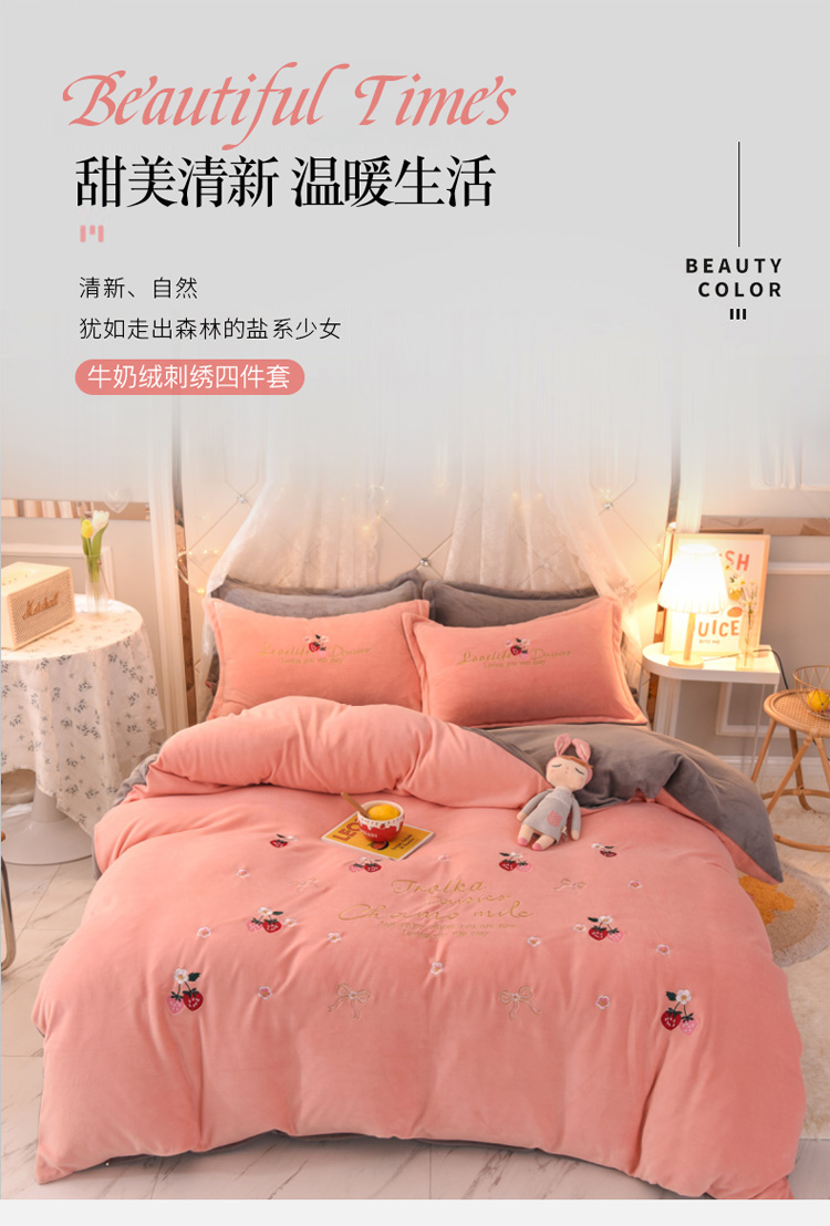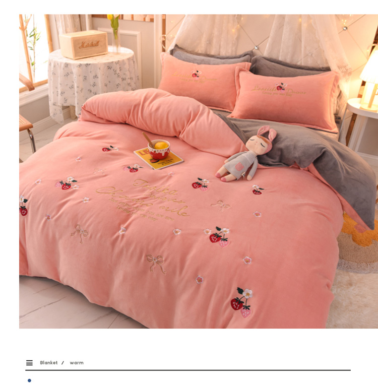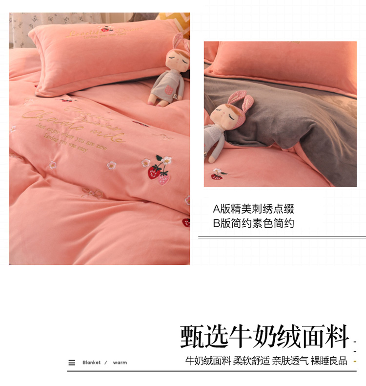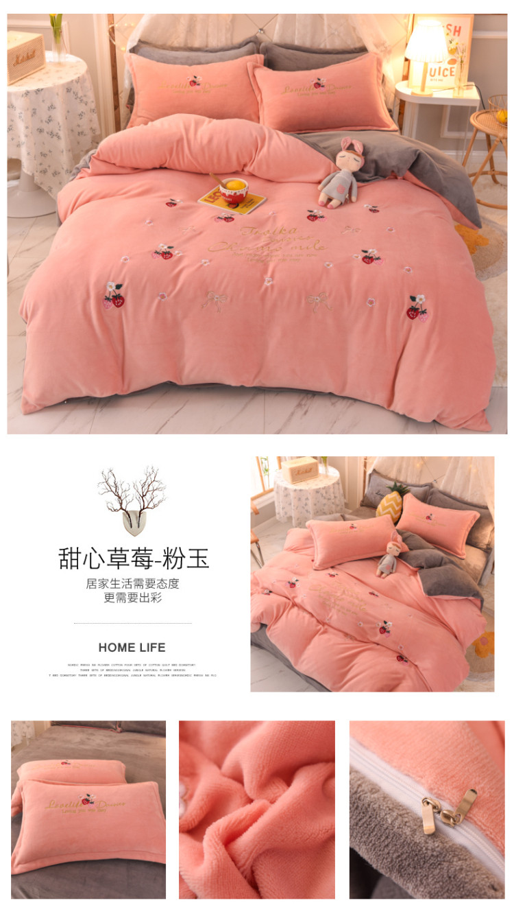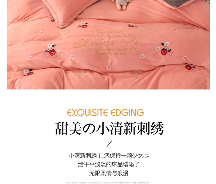 当前位置: 91家纺网 > 商品网购 > 床品套件 > 四件套 > 牛奶绒四件套 > 捌月牛奶绒小清新刺绣四件套 甜心草莓-粉玉